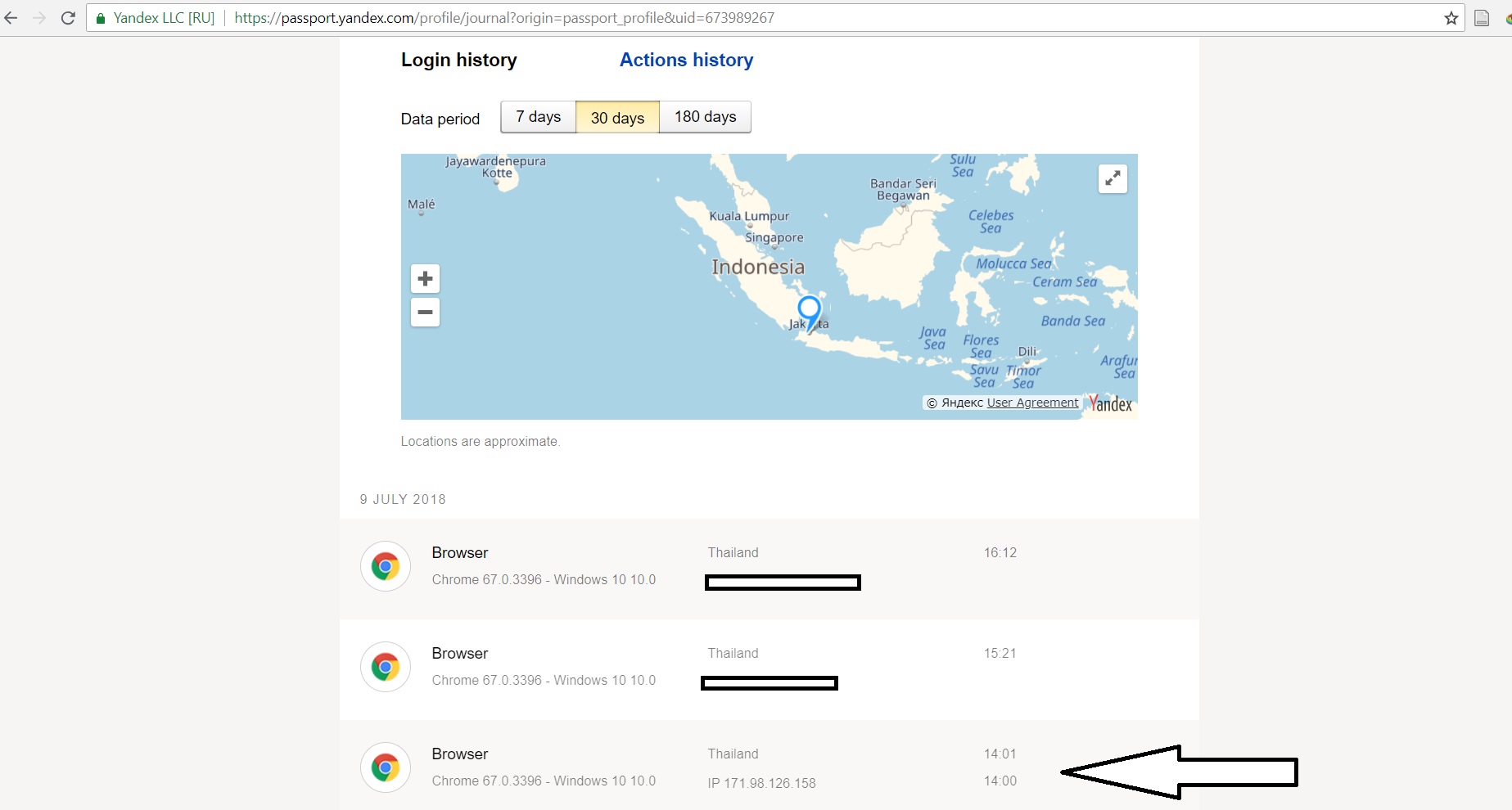 ด้วยความสงสัย ผมก็เลยอยากรู้ว่า yandex คืออะไร ปรากฎว่า ผมสามารถ log in ได้ ด้วย รหัสประจำผม !!!! และพบว่ามีการสร้าง email นี้เมื่อวาน พร้อมกันกับ ผู้สร้างอีเมลล์นี้ อยู่ ที่ Latitude -6.178100 (6°10'41.16" S) // Longitude 106.629997 (106°37'47.99" E) และค้นต่อจนรู้ว่า อยู่ที่ Tangerang ประเทศ indonesia WTF !!!!! และ เจ้าหน้าที่ก็ติดต่อมาหาผมว่า พบแล้วว่ามีการปรับเปลี่ยนอีเมลล์ อีกทั้งมีการใช้แต้มผมที่เคยสะสมมาจนหมด เมื่อวาน และชื่อผู้โดยสารก็ไม่ใช่คนไทย ผมเลยติดต่อเจ้าหน้าที่อีกครั้งนึง (น่าจะครั้งที่ 7-8 และต้องเกริ่นตั้งแต่ต้นซ้ำๆไปๆซ้ำๆมา) เจ้าหน้าที่ก็บอกรับทราบ แจ้งไปที่ศูนย์แล้ว รอดำเนินการต่อ