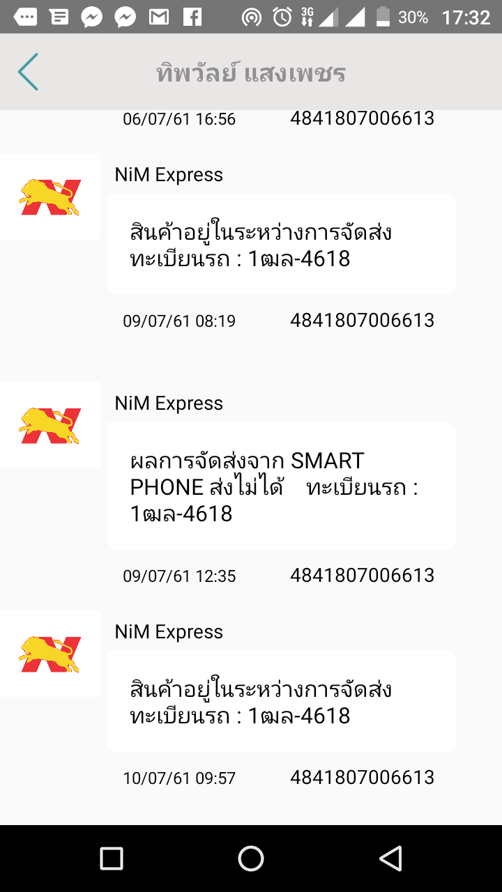 สั่งของแล้วใช้บริการขนส่งNim express ไม่คิดว่าจะนานขนาดนี้😂😂5วันแล้วเงียบไร้การติดต่อ