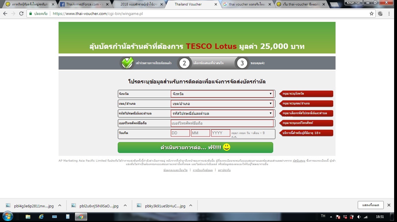ระวัง!เว็บโฆษณาที่แจ้งว่า"ผู้คือผู้โชดดี" เช่น www.thai-voucher ข้อมูลส่วนตัวและการเงินของคุณอาจรั่วไหลได้เพราะตัวคุณเอง