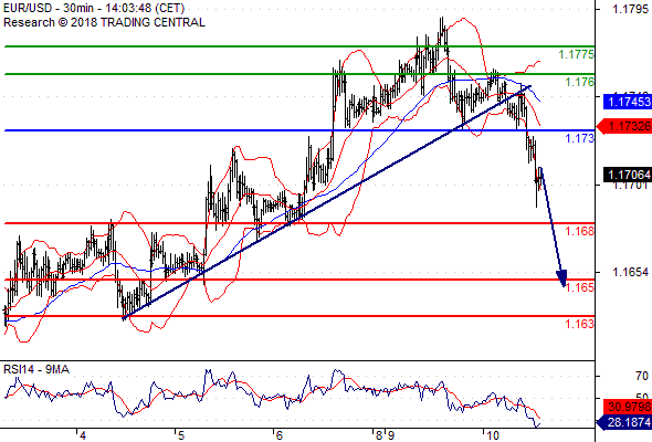 จุดที่ต้องการ: สถานะขายต่ำกว่า 1.1730 เป้าหมายต่อไปที่ 1.1680 และ 1.1650