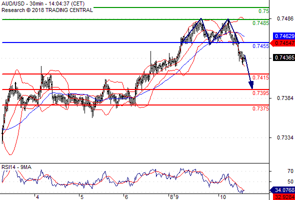 จุดที่ต้องการ: สถานะขายต่ำกว่า 0.7455 เป้าหมายต่อไปที่ 0.7415 และ 0.7395