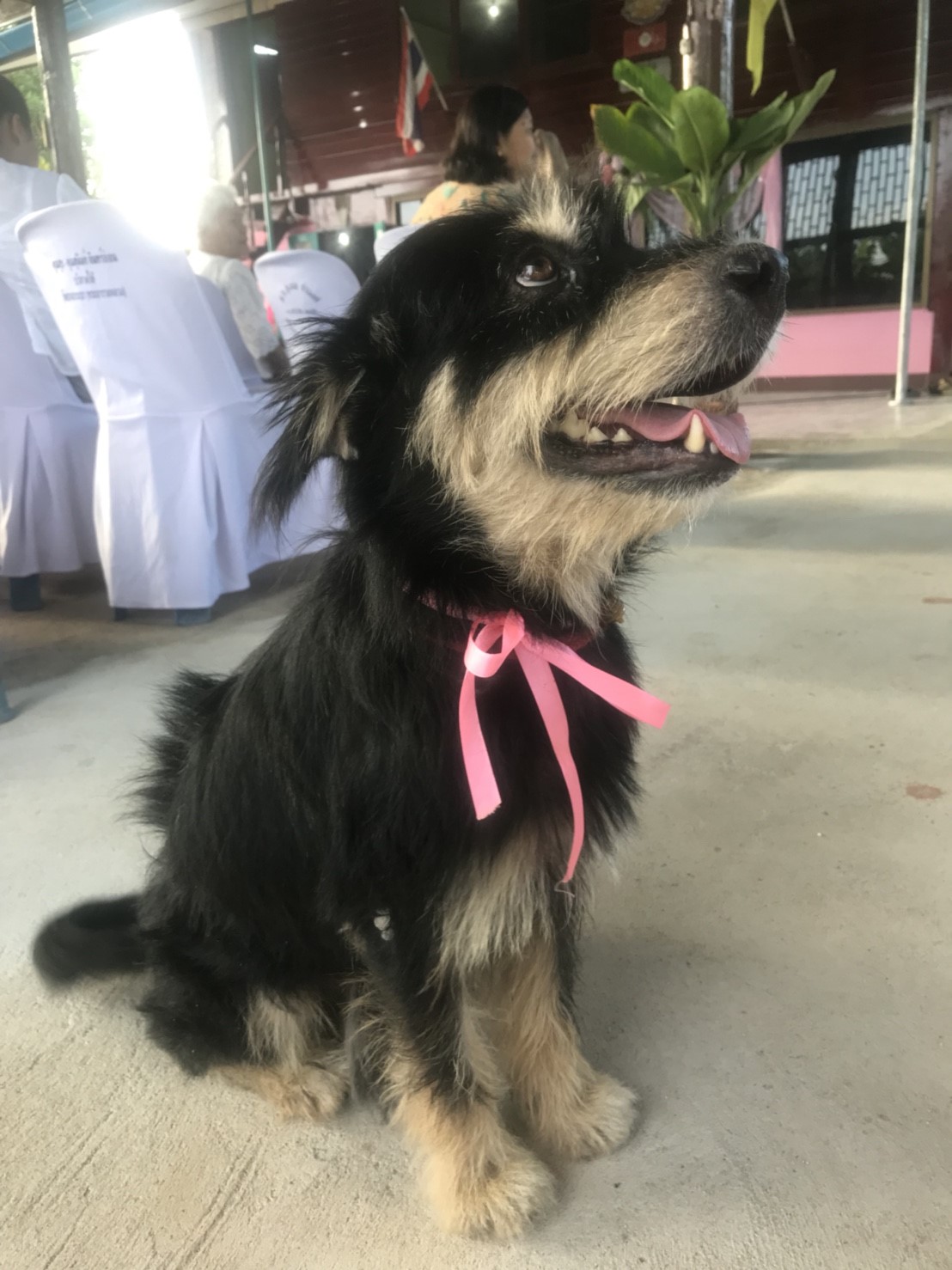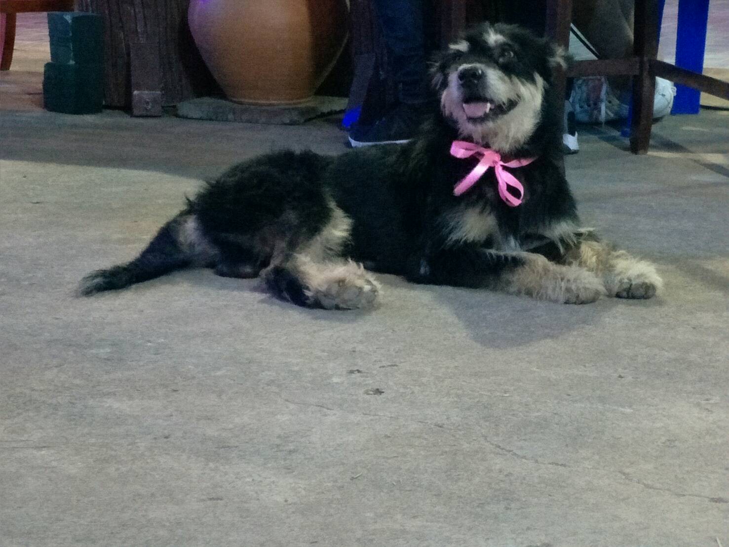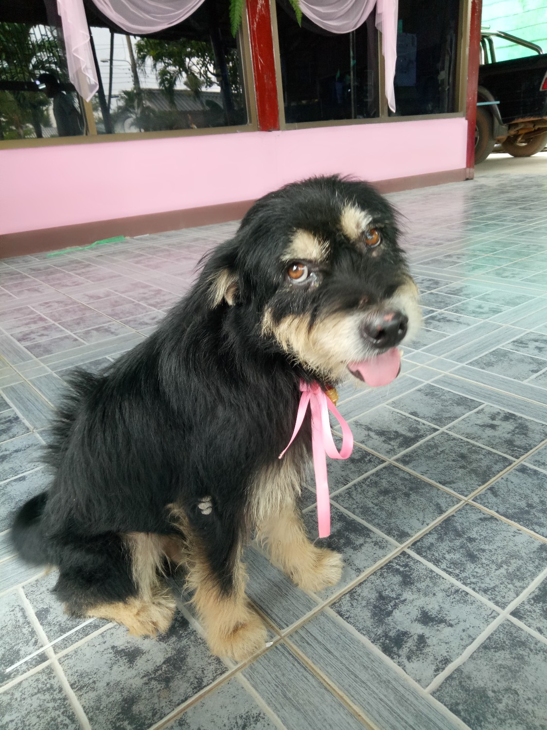 เป็นหมาพันธุ์ผสมอะไรสักอย่าง พอดีพี่เราเก็บมาจากหมาจรจัดที่ออกลูกค่ะ นิสัยน่ารักมาก เป็นมิตรกับทุกคน ตอนกลางคืนจะชอบมุดรั้วออกไปเดินเล่นริมถนนในซอยค่ะ บ้านเราอยู่ในซอย มีรั้ว แต่รั้งไม่ได้จริงๆค่ะเค้าหาทางออกไปได้เสมอ แต่จะรู้หลบรู้หลีกรถยนต์เป็นอย่างดีนะคะ พอรถมาเค้าจะยืนชิดริมถนนเลยค่ะ ไม่ได้ซนแค่ชอบเดินเล่นลมเย็นๆเฉยๆค่ะ