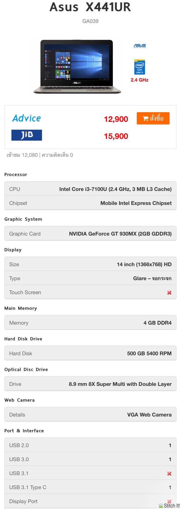 ช่วยเลือกโน๊ตบุ๊คให้หน่อยค่ะ งบ15,000