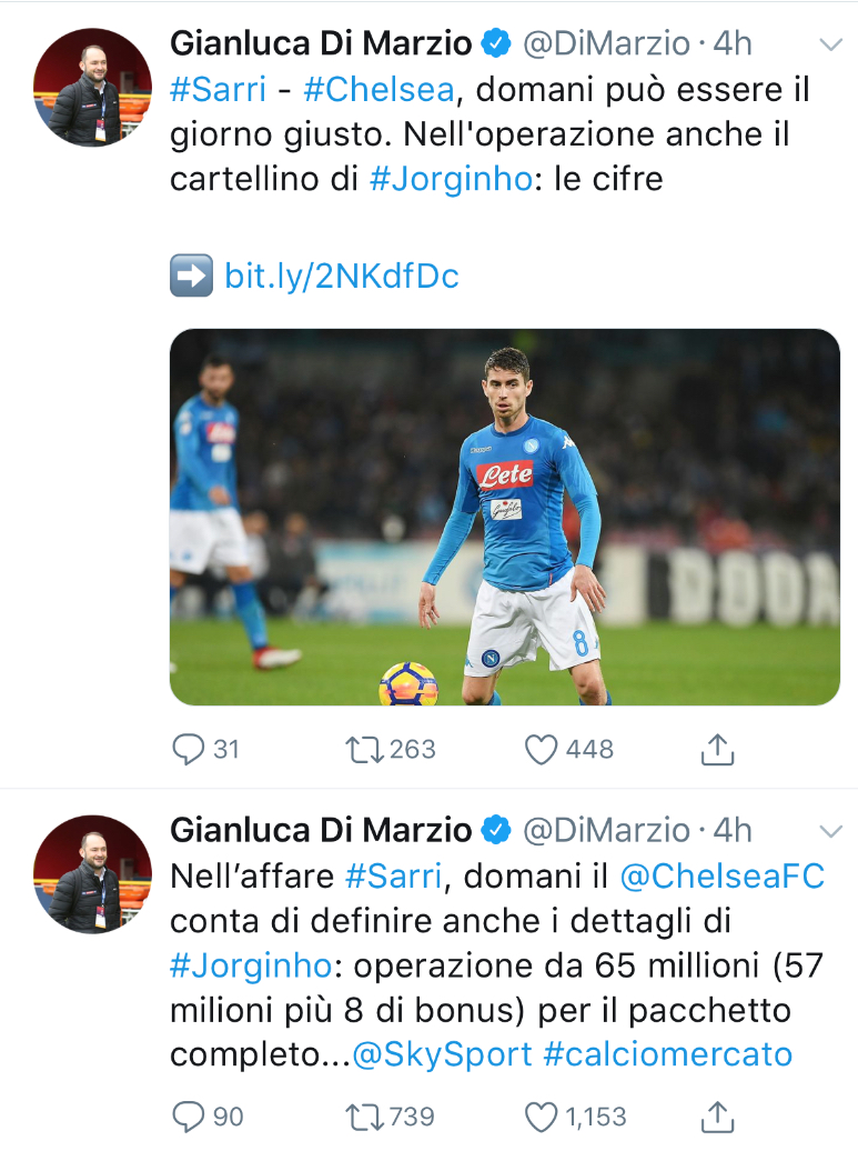 [ Di Mazio ] อ้าววว ยังไง !! เชลซีใกล้บรรลุข้อตกลงในการคว้าตัว “ ซาร์รี่ + จอร์จิญโญ่ “ ใกล้เปิดตัวเร็วๆนี้