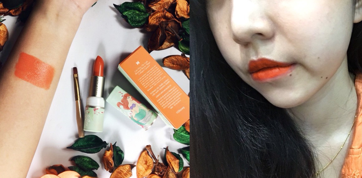ตัวที่ 5. Cute Press The Little Mermaid Lipstick วันนี้ปลาเลือก เบอร์ 01 Silly Sebastian ซึ่งเป็นสีส้มมานะคะ แค่มีในครอบครองก็ถือว่า ชีวิตสำเร็จไปอีกขั้นค่ะ 555555555 ซึ่งสายเจ้าหญิงอย่างปลาที่ชอบที่สุดคือเจ้าหญิงแอเรียล แพคเกจของลิปก็ทำมาแตกต่างจากแบรนด์อื่นๆมากค่ะ เนื่องจากวัสดุเป็นกระดาษ แต่ปัญหาคืออย่างปลามีเหงื่อออกมาก ยิ่งบริเวณมือกับเท้ายิ่งออก จะให้หยิบจับอะไรที่เป็นกระดาษก็มีแต่ พัง! ค่ะ เลยเลือกเก็บไว้ที่บ้าน เนื้อสีค่อนข้างชัดมากกกกก เนื้อไม่แมทนะคะ เทคนิคง่ายๆในในการทาลิปแบบนี้คือทาเสร็จก็เอาทิชชู่ซับนะคะ ป้องการไม่ให้ดูเยิ้มจนเกินไป ถ้าสำหรับปลาเนื้อยังไม่ดีเท่าไหร่ แต่ชอบความเป็นเจ้าหญิงค่ะ 555555