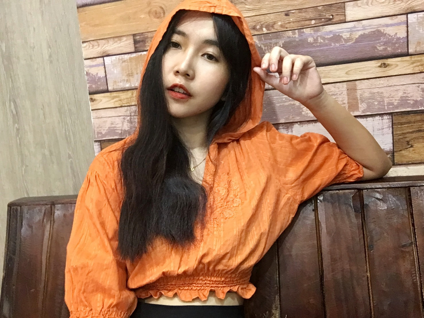 ตัวที่ 7.เสื้อส้มสไตล์วินเทจ อย่างที่ปลาบอกในตอนแรกค่ะ ว่าสีส้มได้ทั้งลุคโคเรีย และสายวินเทจ เสื้อตัวนี้ปลาซื้อมาจาก instagram ค่ะ ร้านถ้าจำไม่ผิดน่าจะชื่อมือไม้ เป็นภาษาอังกฤษนะคะ ต้องบอกเลยวากว่าจะ CF ทัน เชื่อว่าสาวๆหลายคนอยากได้เสื้อผ้าแต่ซื้อไม่เคยทัน เพราะมีคนชิงตัดหนาใช่ไหมคะ 55555 ให้ท่องคำนี้ไว้นะคะ ยังมีโอกาสในไลฟ์ต่อไป