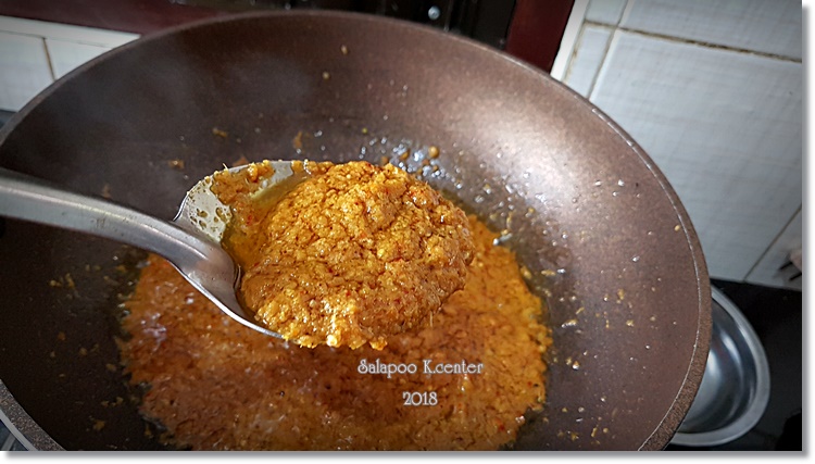 ใส่ลงไปผัดกับน้ำพริก เติมน้ำขลุกขลิกรอปลาสุก