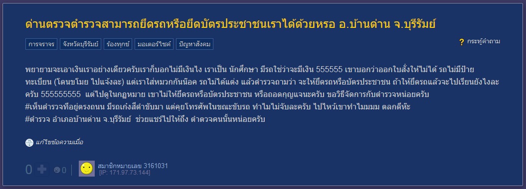 ด่านตรวจตำรวจสามารถยึดรถหรือยึดบัตรประชาชนเราได้ด้วยหรอ อ.บ้านด่าน จ.บุรีรัมย์