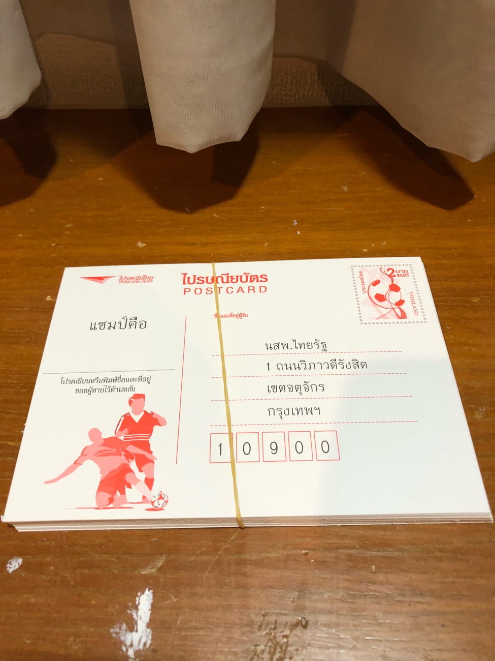 รบกวนสอบถามผู้รู้ว่า หลังไปรษณีย์บัตรทายบอลโลกกับไทยรัฐ ใช้ตราประทับชื่อและที่อยู่แทนการเขียนได้มั้ยครับ