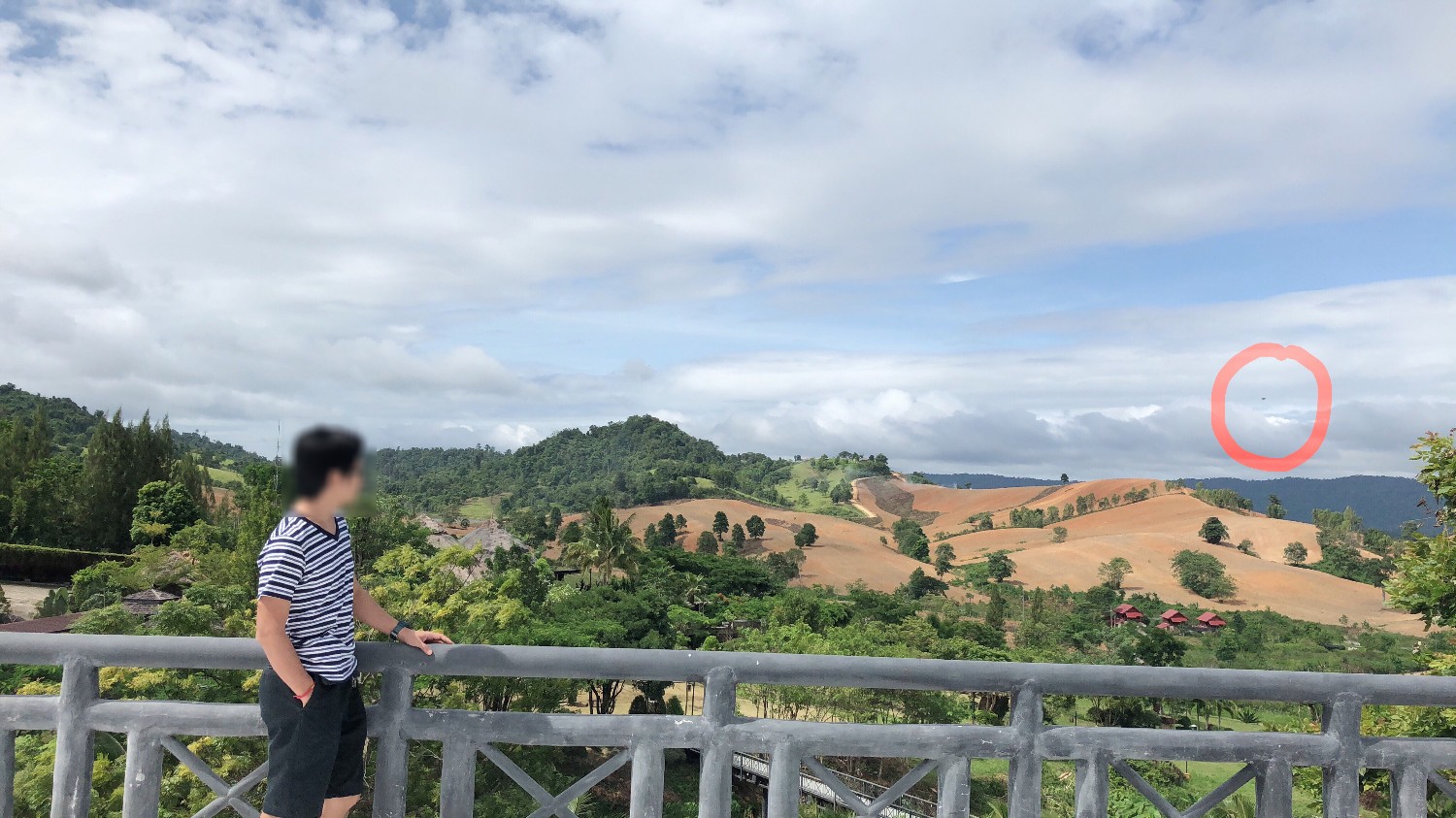 วันที่ 12-13 กรกฏาคม 2561 ที่ผ่านมา ผมได้พาครอบครัวไปพักผ่อนที่รีสอร์ทแห่งนึงที่เขาใหญ่ ถ่ายรูปบ้างพอสมควร และก่อนกลับได้แวะถ่ายรูปที่จุดชมวิวก่อนออกจากรีสอร์ทตรงจุดนี้ 7 รูป และก็ได้เลือกโพสต์ลงเฟสตามปกติไป 1 รูป ระหว่างเล่นมือถือก็ซูมภาพเล่นดู เลยสังเกตุวัตถุแปลกบนท้องฟ้าในรูปที่โพสต์ เลยกลับไปดูรูปเซ็ทเดียวกันทั้งหมด เห็นวัตถุดังกล่าว 5 รูป ซึ่งตอนแรกสังเกตุยากมากเพราะมันเล็ก เลยเอามาให้เพื่อน ๆ ช่วยกันวิเคราะห์และขอความคิดเห็นครับ ส่วนตัวตอนแรกไม่กล้าคิดว่าเป็น UFO จะเป็นคอปเตอร์ หรือโดรน อะไรก็ว่าไป แต่พอดูครบทุกรูป เห็นการเคลื่อนไหว ความสูงที่มันทำได้ และซูมดูรูปทรงแล้วก็ไม่น่าจะใช่ เลยอยากขอความคิดเห็นครับ