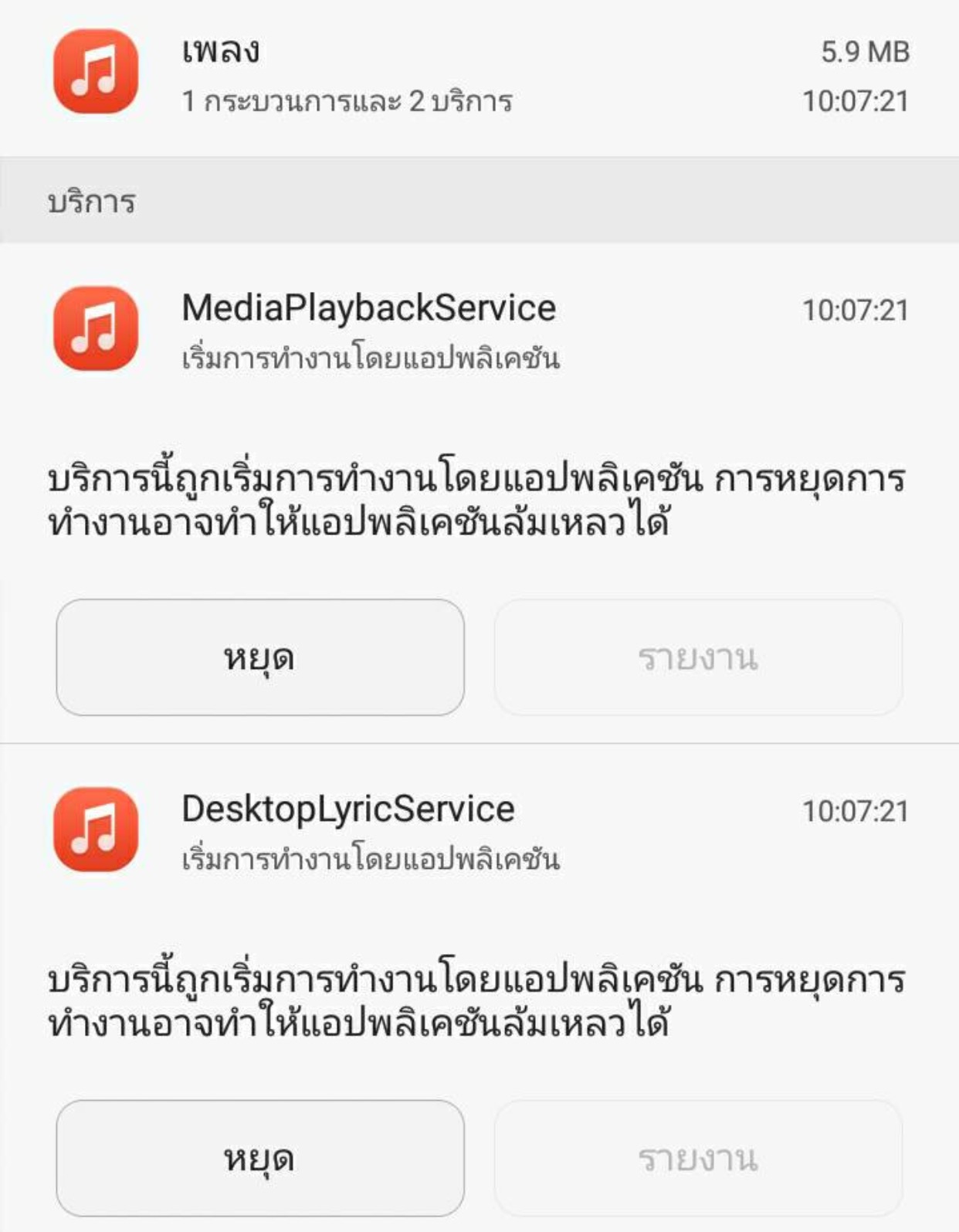 1. ใน Running (แอพที่กำลังทำงาน) เห็นแอพ 2 ตัวที่ไม่ได้ใช้งานในขณะนั้น คือ Line กับ Music player แสดงขึ้นมาด้วย (คือมีแอพอยู่ในเครื่อง แต่ ณ ตอนนั้นยังไม่ได้เปิดขึ้นมา) เลยสงสัยว่า