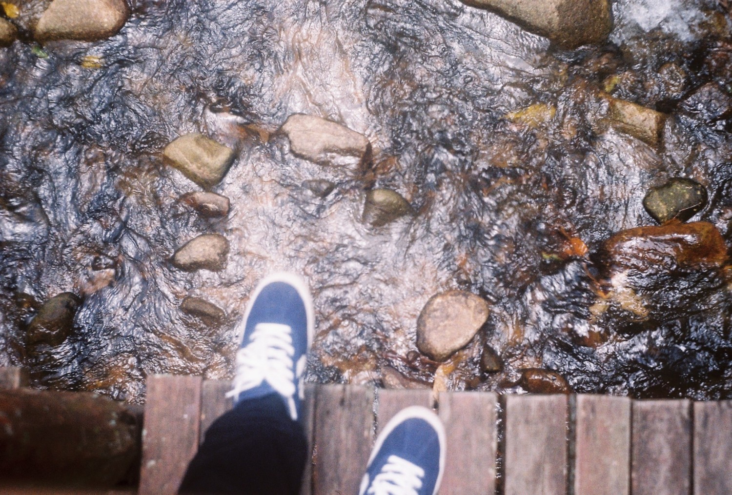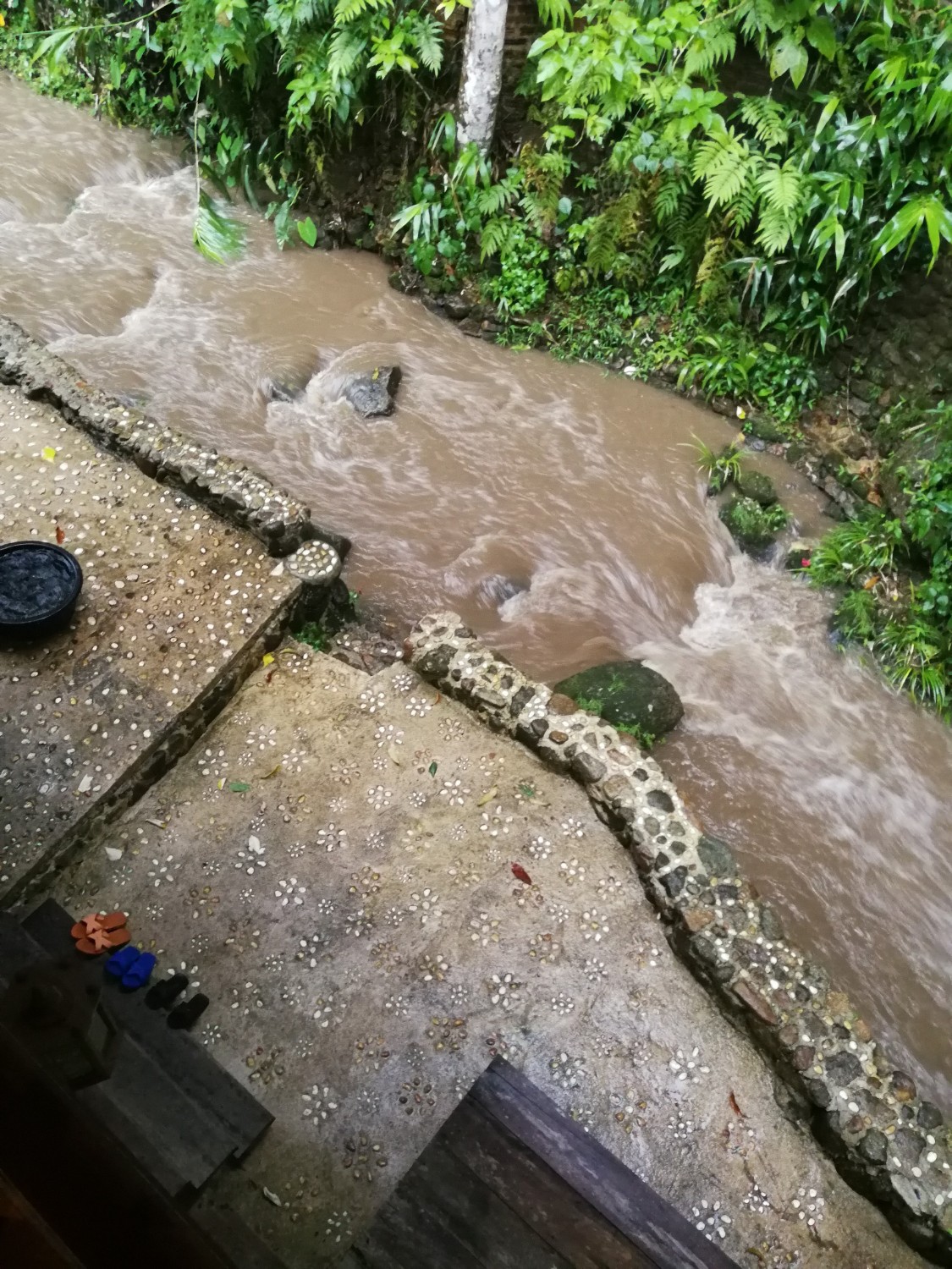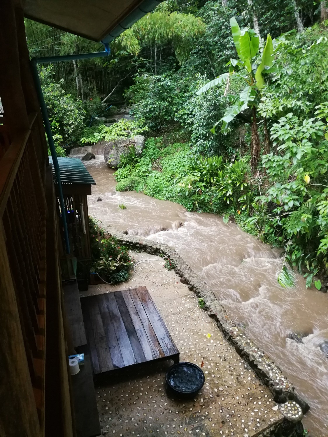 เราโชคดีที่กลับมาถึงที่พักก่อนที่ฝนจะเทลงมา และโชคดีที่ได้ลงไปเดินในริมธารหน้าบ้านพัก มันเย็นมาก เย็นจนชา จนรู้สึกมันเย็นจนกัดขา ขาแข็งไปหมด