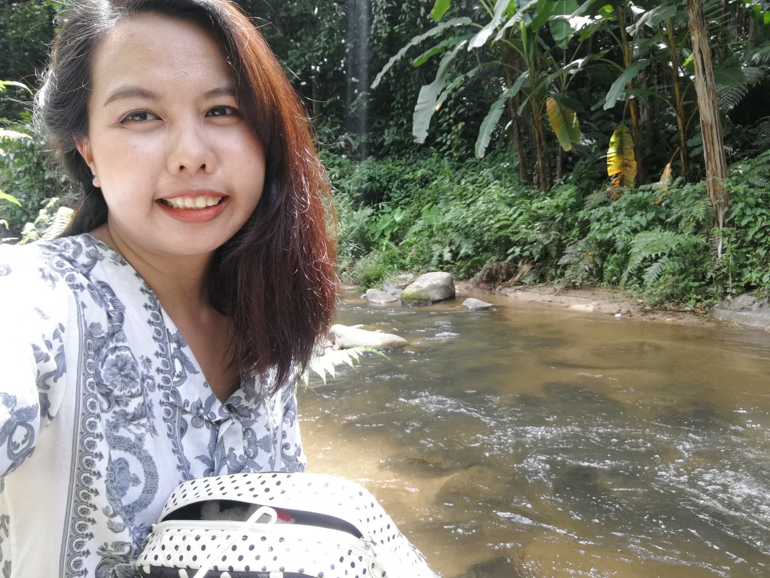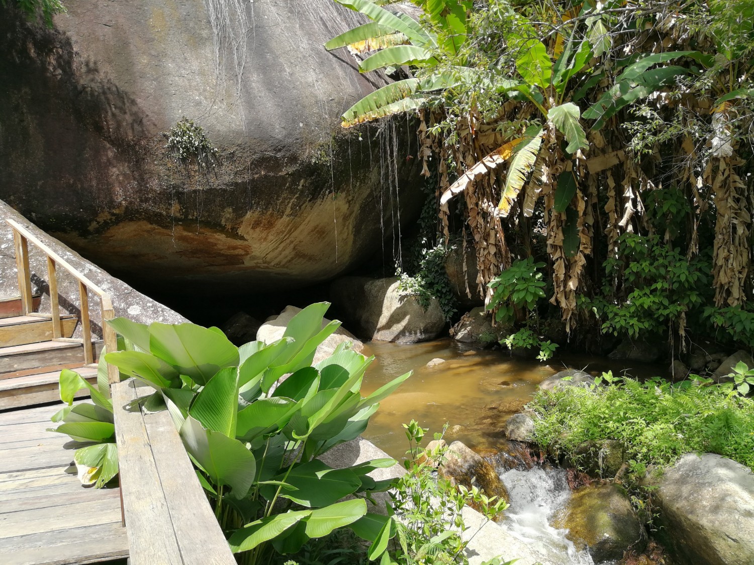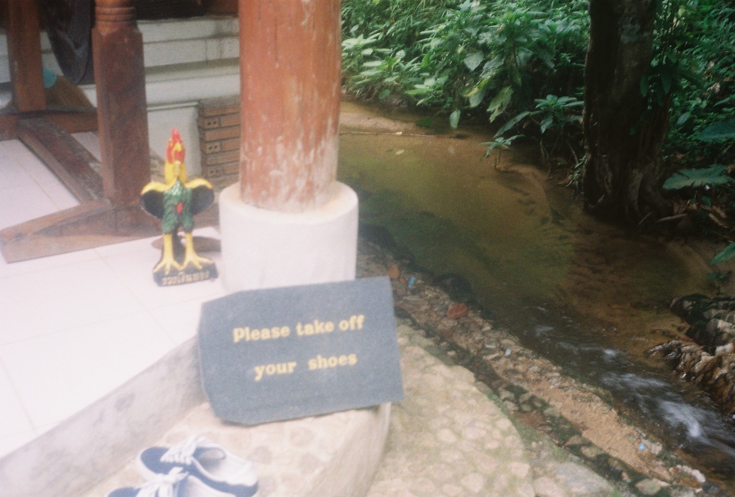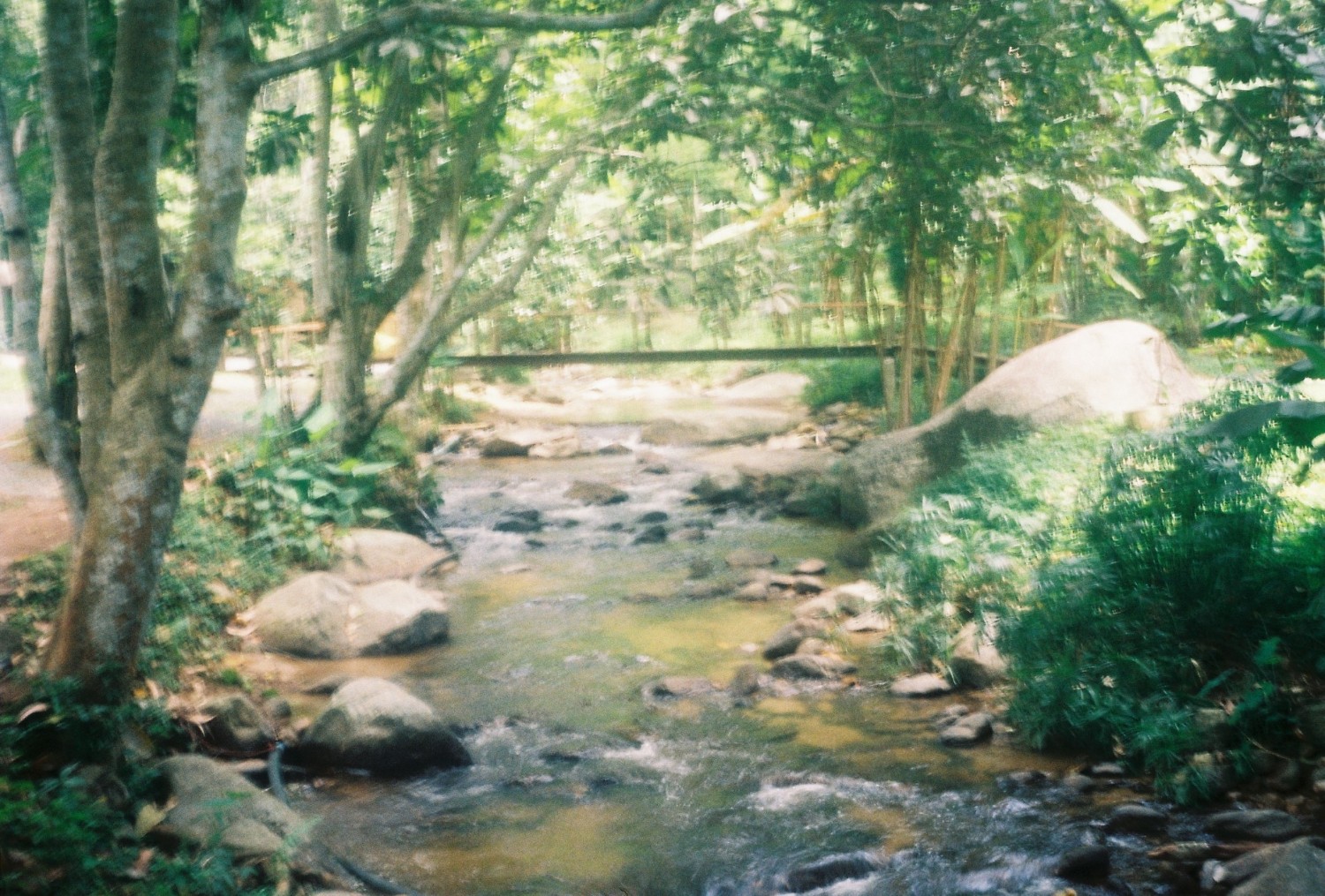 เราโชคดีที่กลับมาถึงที่พักก่อนที่ฝนจะเทลงมา และโชคดีที่ได้ลงไปเดินในริมธารหน้าบ้านพัก มันเย็นมาก เย็นจนชา จนรู้สึกมันเย็นจนกัดขา ขาแข็งไปหมด