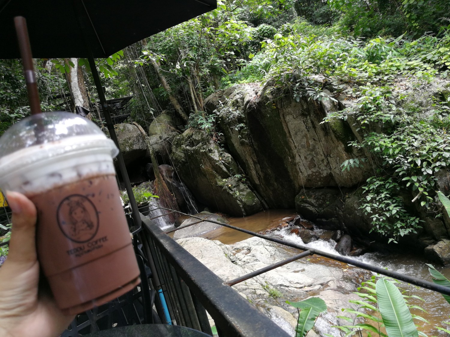 ไปต่อกันที่ร้าน TEDDU Coffee เป็นร้านที่อยู่ล่างเนินลงไป ต้องเดินลงไปเพื่อไปเจอร้านใกล้น้ำตกลำธารเล็กๆ มีมุมให้ถ่ายรูปเยอะ และมีน้องแมวน่ารักที่เจ้าของร้านเลี้ยงไว้ ไม่กลัวคน ชอบเดินมาเล่นกับลูกค้า แต่ใครที่กินเค้กระวังหน่อยนะ น้องชอบกระโดดขึ้นโต๊ะ เรากินโกโก้ไป เล่นกับน้องแมวไป น่ารักสุดๆ อากาศก็จะเย็นๆชื้นๆหน่อย ฟ้าเริ่มมืด (น่าจะจากฝน) เราก็เลยออกจากร้านเพื่อไปต่อ แนะนำว่าอย่ากินน้ำที่สั่งหมดจากในร้านนะคะ เพราะตอนเดินขึ้นมันเหนื่อยกว่าตอนลงเยอะมาก เหนื่อยแบบนั่งหอบตรงบันไดขั้นสุดท้ายที่จะถึงรถ หอบอยู่หลายนาที ใจเต้นแรงสุดๆ