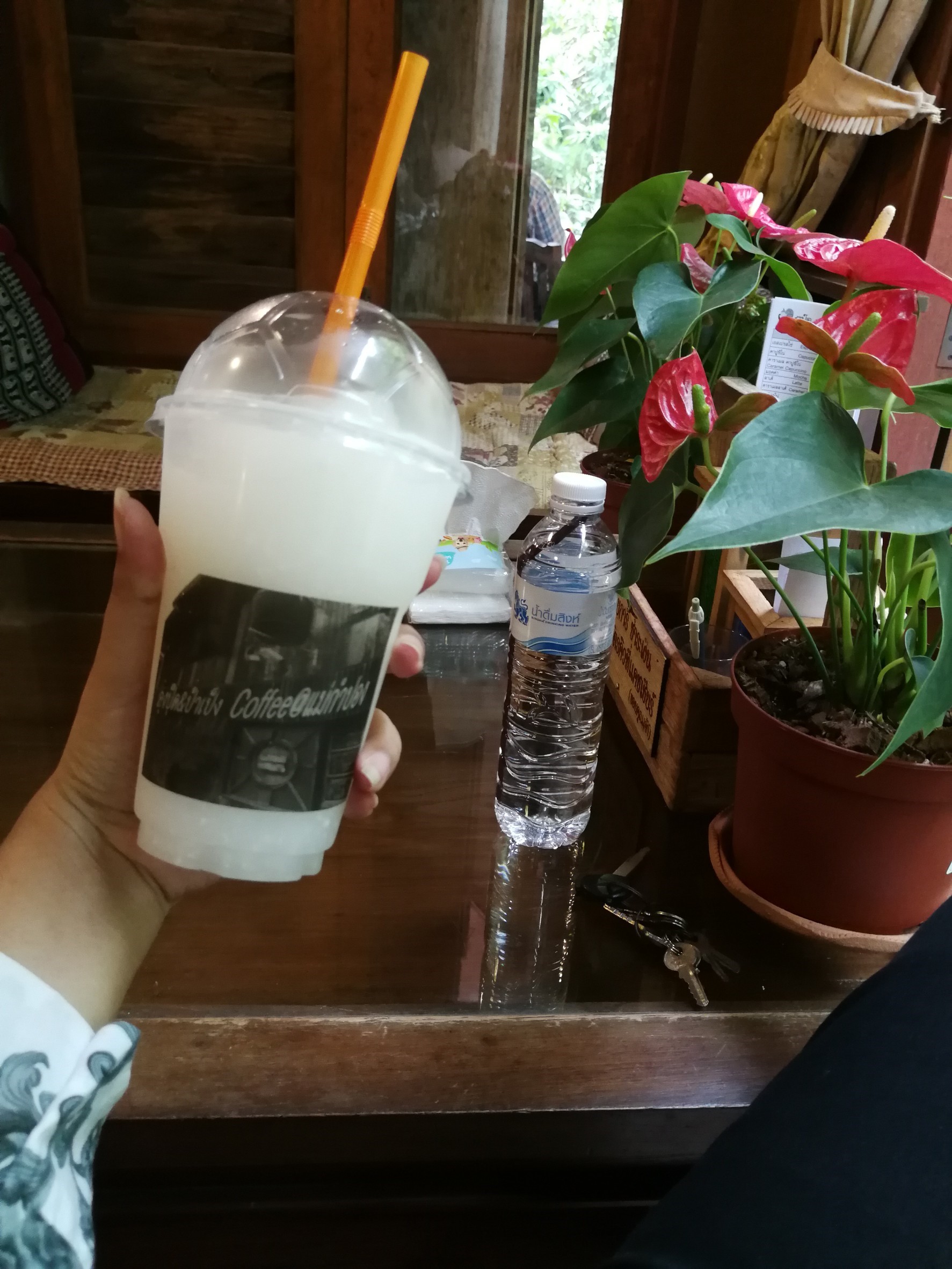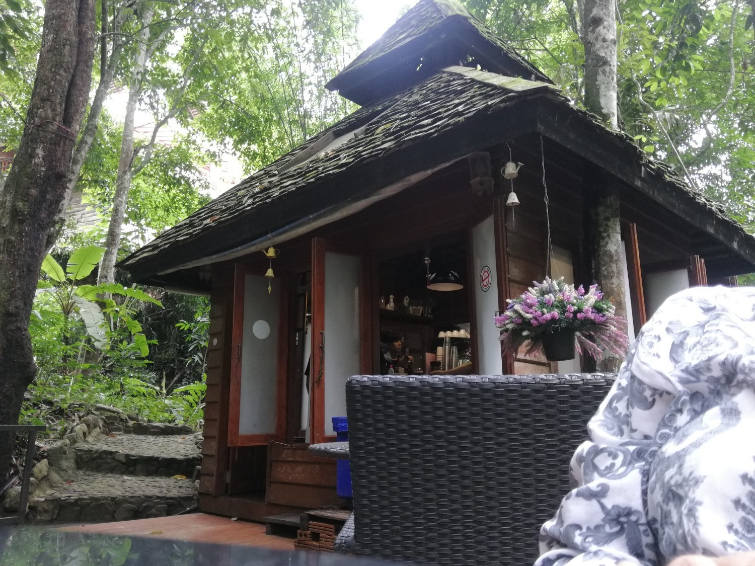 ในร้านมีที่นั่งทั้งริมลำธาร และในร้าน มีของฝากขายเล็กน้อย น่ารักดี แต่ด้วยความที่เรากลัวฝนตกเลยนั่งไม่นานก็กลับมาที่พัก