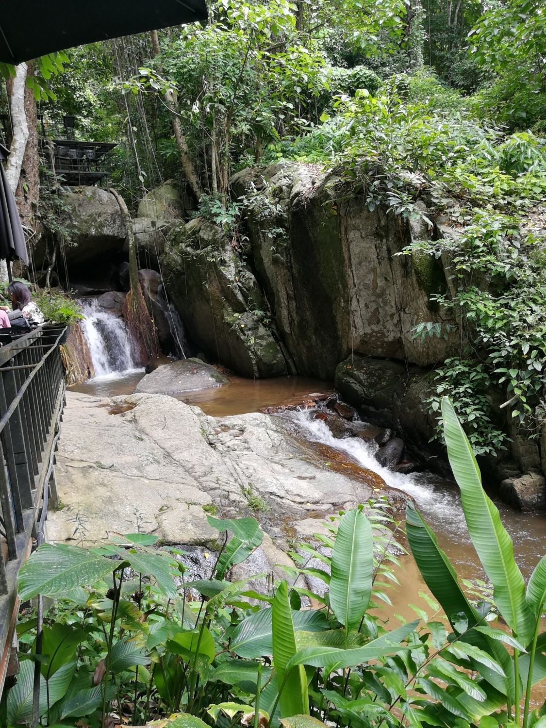 แดดร่มลงหน่อยก็ขับรถกลับมาบนเขา แวะบ่ายนี้คือ ผาน้ำลอด ซึ่งอยู่ในโครงการหลวงเช่นกัน มีที่ให้นั่งกินชา กาแฟ เสียงน้ำไหลผ่าน ร่มรื่น (บางเวลา) สำหรับที่นี้เราไม่ได้กินอะไรนะ เพราะยังอิ่มมาก ถ่ายรูปเสร็จก็กลับออกมาเลย