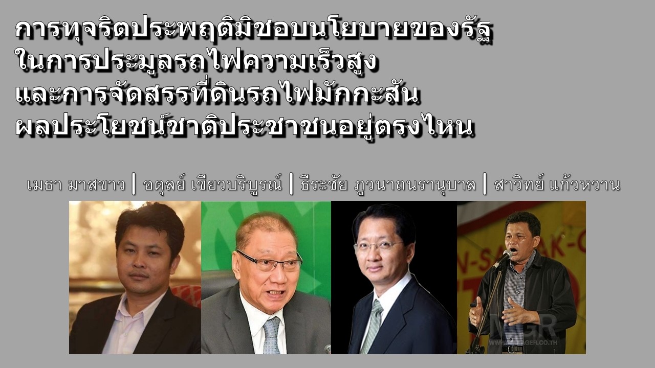 "การทุจริตประพฤติมิชอบนโยบายของรัฐในการประมูลรถไฟความเร็วสูง และการจัดสรรที่ดินรถไฟมักกะสัน ผลประโยชน์ชาติประชาชนอยู่ตรงไหน"