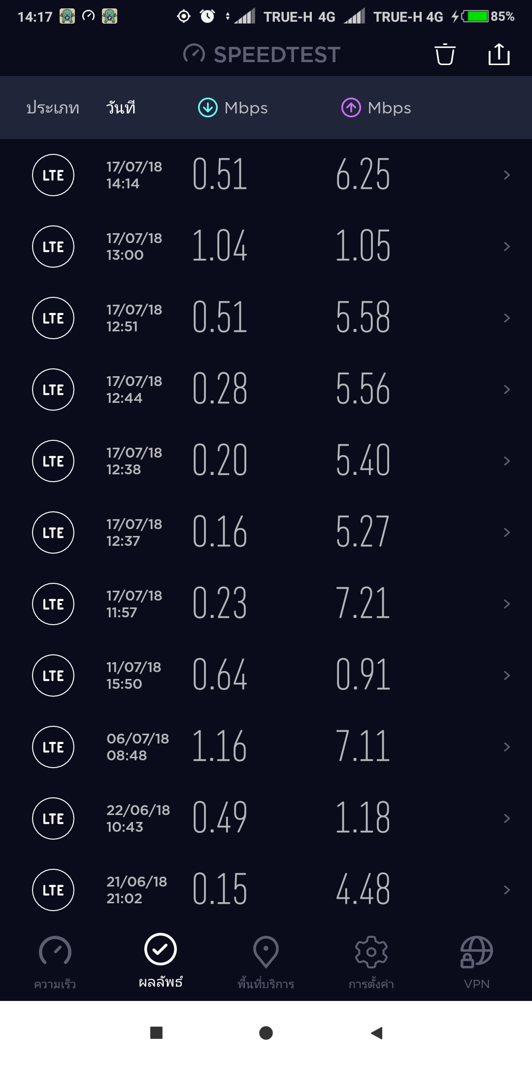 ระยะเวลาการเทสทดสอบความเร็วระหว่าง22/6 - 17/7ให้speedtest บรรยายเอาตามภาพ