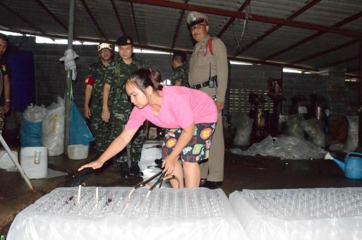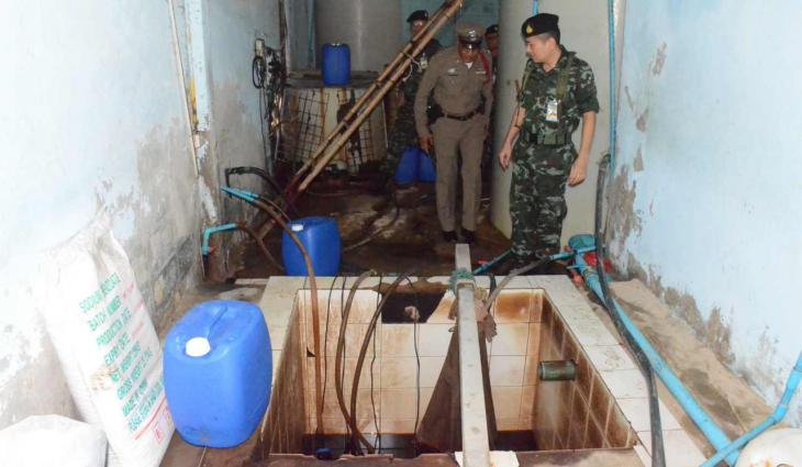 เจ้าหน้าที่พบ คนงานจำนวน 7 คน กำลังนั่งบรรจุน้ำปลา และน้ำส้มสายชูอยู่ นอกจากนี้ยังพบว่ามีรถกระบะเข้ามารับสินค้า จึงได้ควบคุมตัวไว้ก่อน จากการตรวจสอบโดยรอบโรงงานพบว่า มีสภาพเก่ามาก โดยภายในมีกล่องบรรจุผลิตภัณฑ์ ขวดน้ำปลา และน้ำส้มสายชู มีทั้งบรรจุแล้ว และยังไม่บรรจุจำนวนมาก ข้างกล่องเขียนว่า น้ำปลา 9 รส และน้ำปลา กุ้งระยอง เมื่อเข้าไปดูด้านในก็พบกับแท็งก์ขนาด 2,500 ลิตรถึง 5,000 ลิตร อยู่จำนวนหนึ่งภายในบรรจุน้ำปลาและน้ำส้มสายชูไว้เต็ม เมื่อเดินเข้าไปดูด้านหลังพบบ่อปูน ขนาด 3 X 2 เมตรจำนวน 2 บ่อ สอบถามคนงานทราบว่าเป็นบ่อผสมน้ำปลา