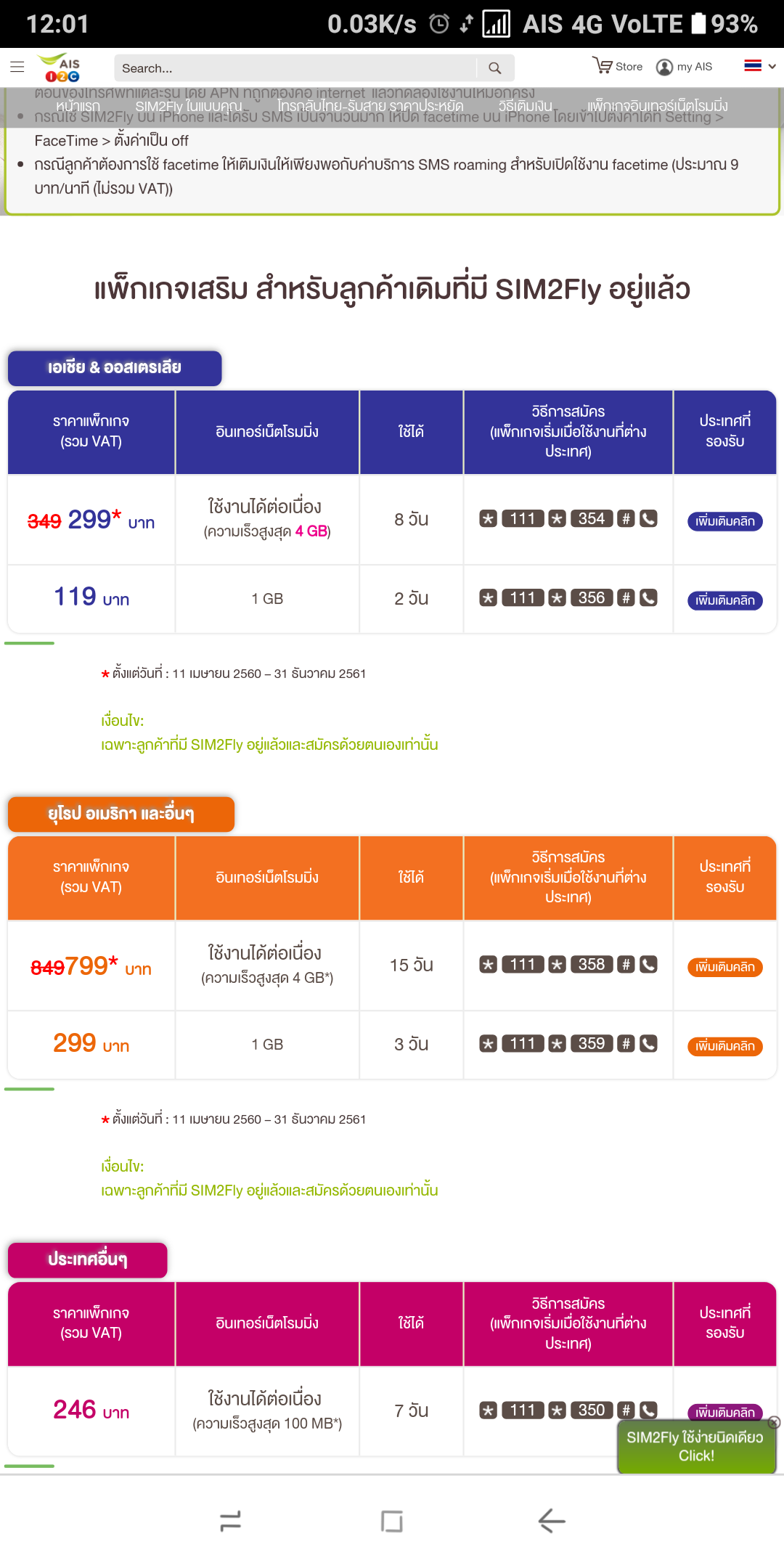 เติมเน็ตเพิ่มให้ SIM2fly AIS แบบรายปี คิดวันใช้งานที่เหลืออย่างไร