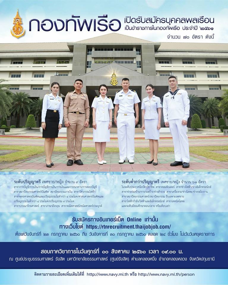 กองทัพเรือเปิดรับสมัครบุคคลพลเรือนเข้ารับราชการ 70 อัตรา สนใจดูรายละเอียดครับ