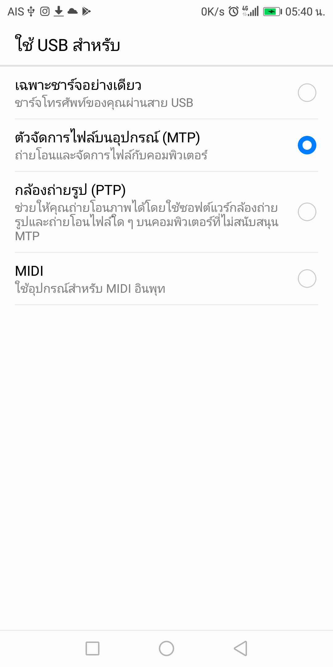 เดิมใช้ oppo เสียบสาย เลือกว่าต้องการทำอะไร