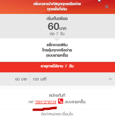 ผมก็กดสมัครบริการตามรายละเอียดเบอร์โทร *591*2*911#
