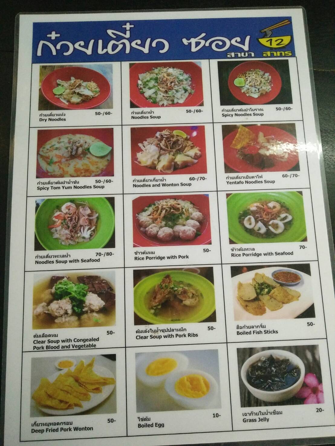 อันนี้คือเมนูครับ ราคาเฉลี่ยก็อยู่ที่ 50 บาท ถ้าเป็นทะเลก็ 70 บาท
