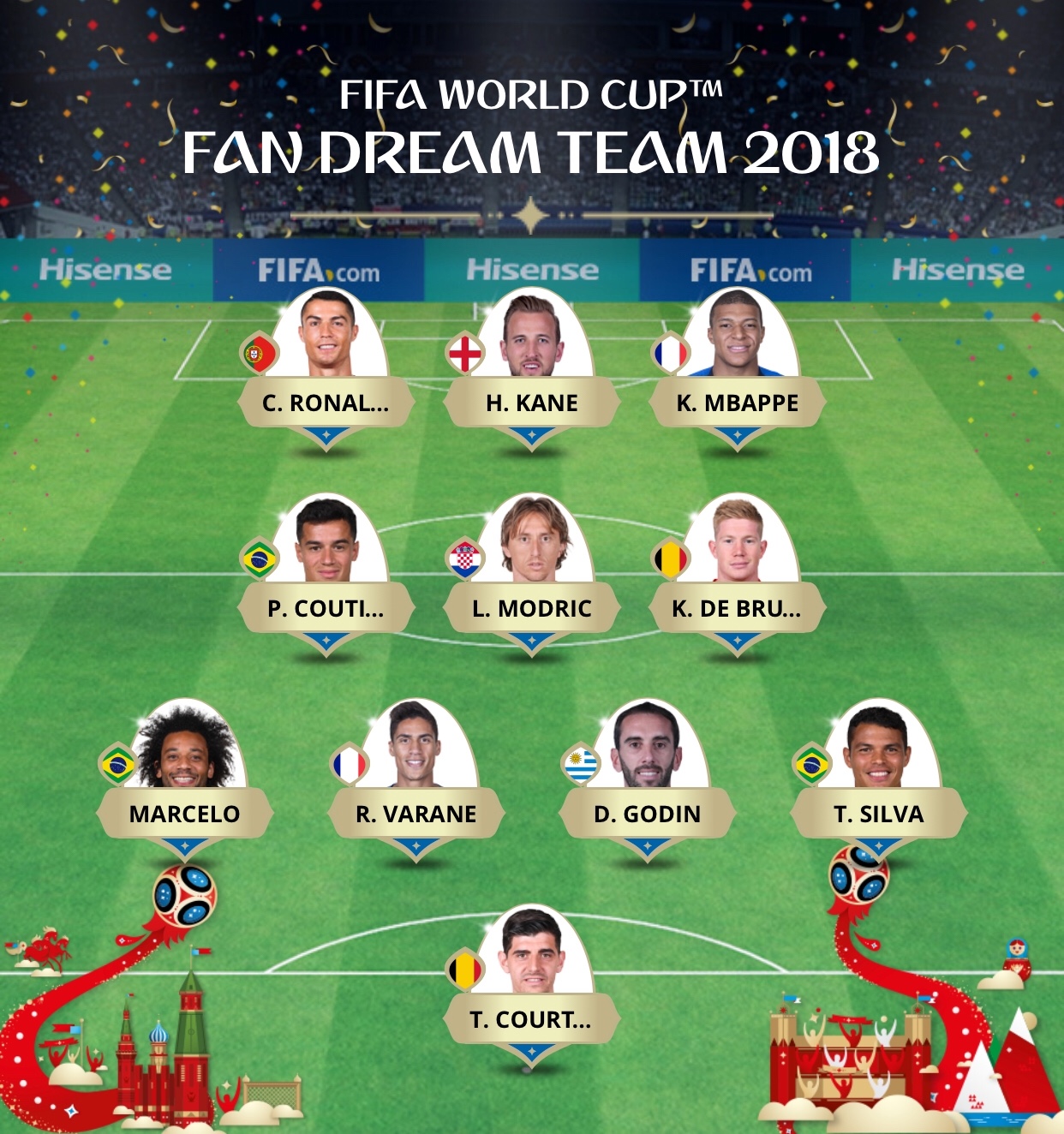 FIFA เลือกนักเตะ Dream Team ฟุตบอลโลก จากการโหวตของแฟนบอลทั่วโลก โดยมีกติกาเลือกนักเตะที่ลงสนามอย่างต่ำ 3 นัด และเลือกนักเตะประเทศเดียวกันได้ไม่เกิน 3 คน (สรุปที่ออกมาก่อนหน้านี้ไม่ใช่ของ FIFA)