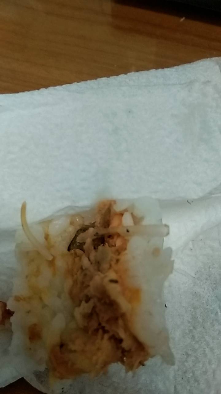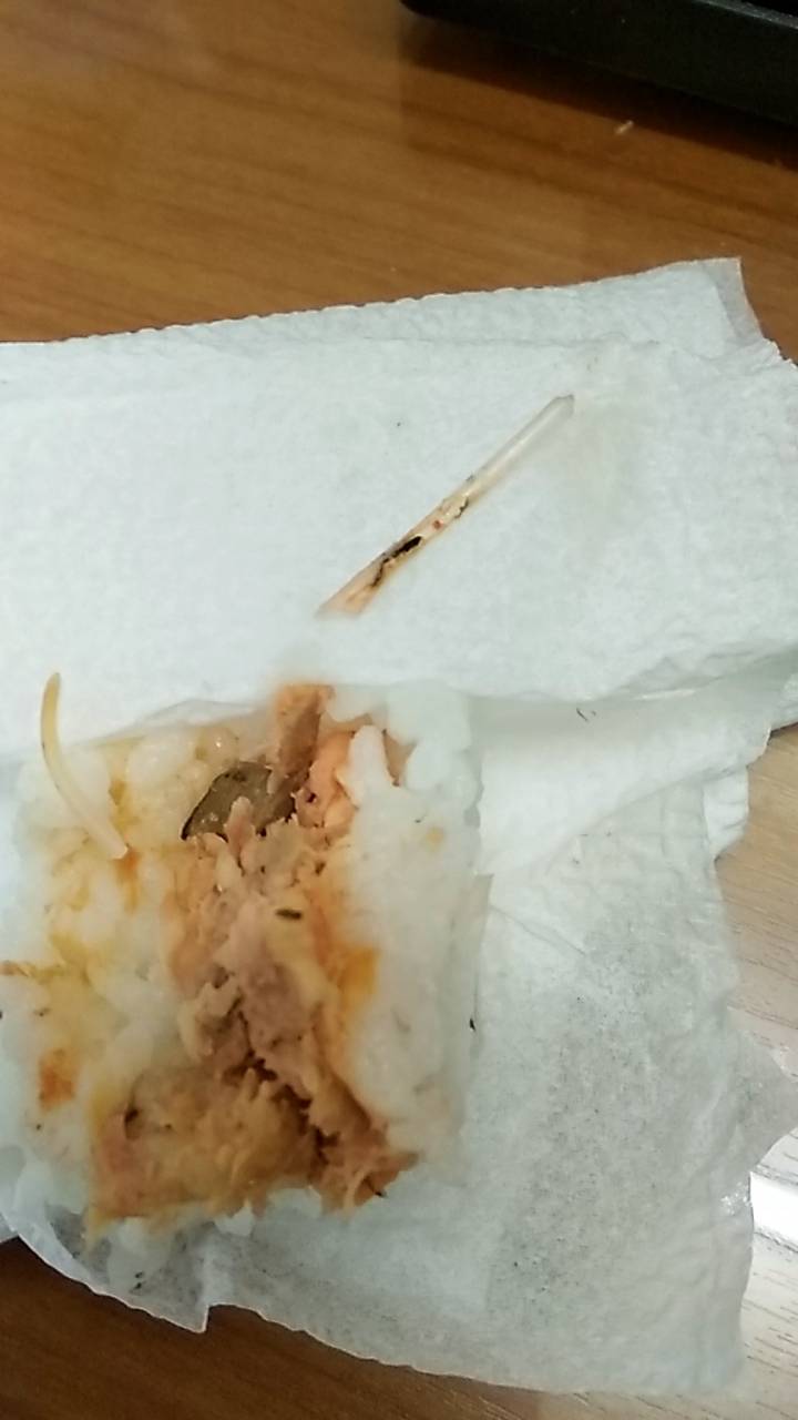 ค่ะ วันนี้ตอนประมาณบ่ายสามโมงครึ่ง ดิฉันได้ใช้บริการร้านสะดวกซื้อ 7-eleven หน้าหมู่บ้านรวิภา ซอยอุดมสุข39/1 ปรากฏว่าขณะที่กำลังกินอย่างอร่อยอยู่นั้น... ได้เจอหนอนค่ะ ไม่รู้ว่ามาจากข้าวหรือมาจากอกไก่