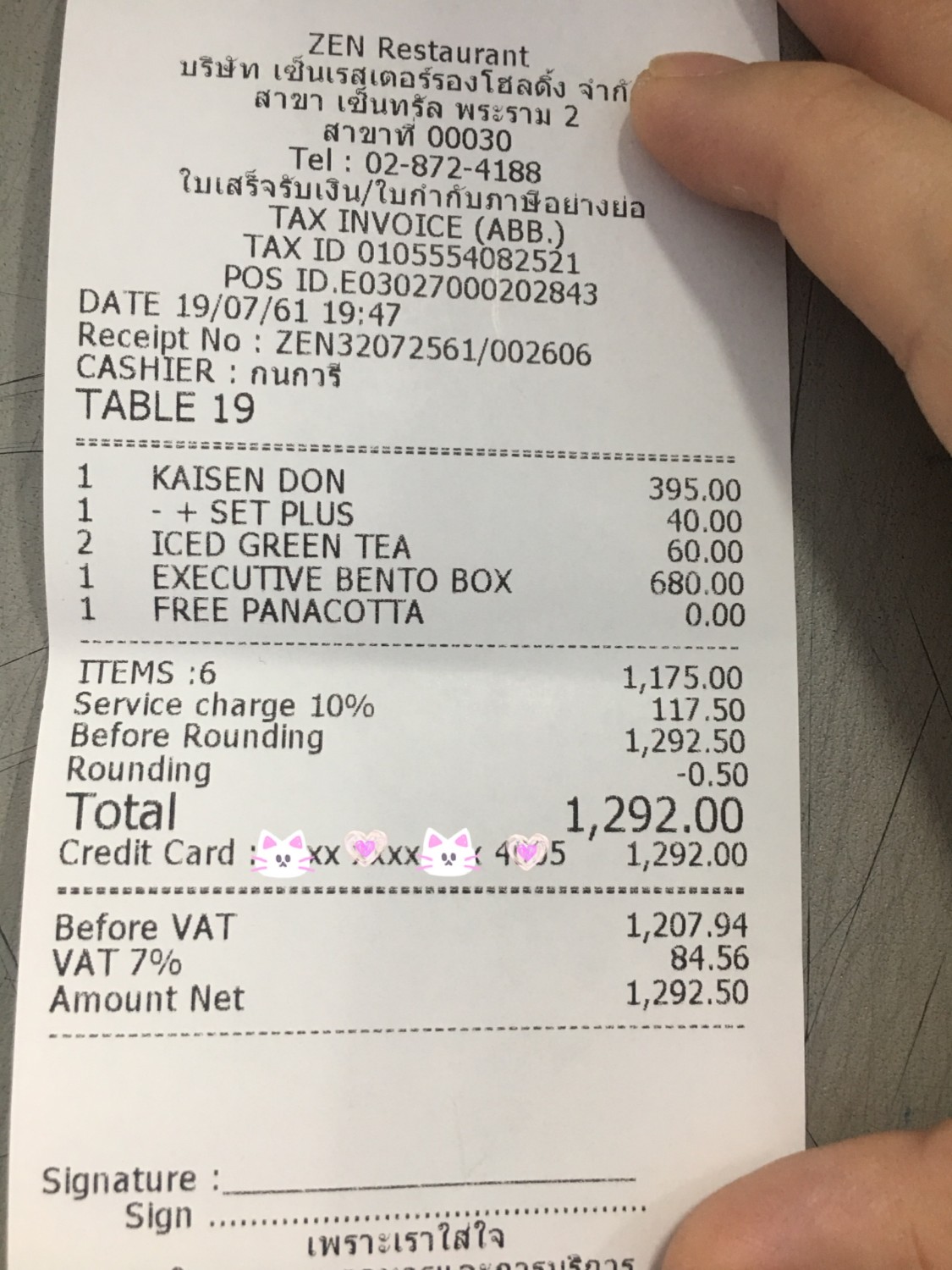 วันที่ 19/07/18 เวลาประมาณ 19.00 น. เราได้ไปทานอาหารที่ ร้าน Z_N สาขา เซ็นทรัลพระราม 2