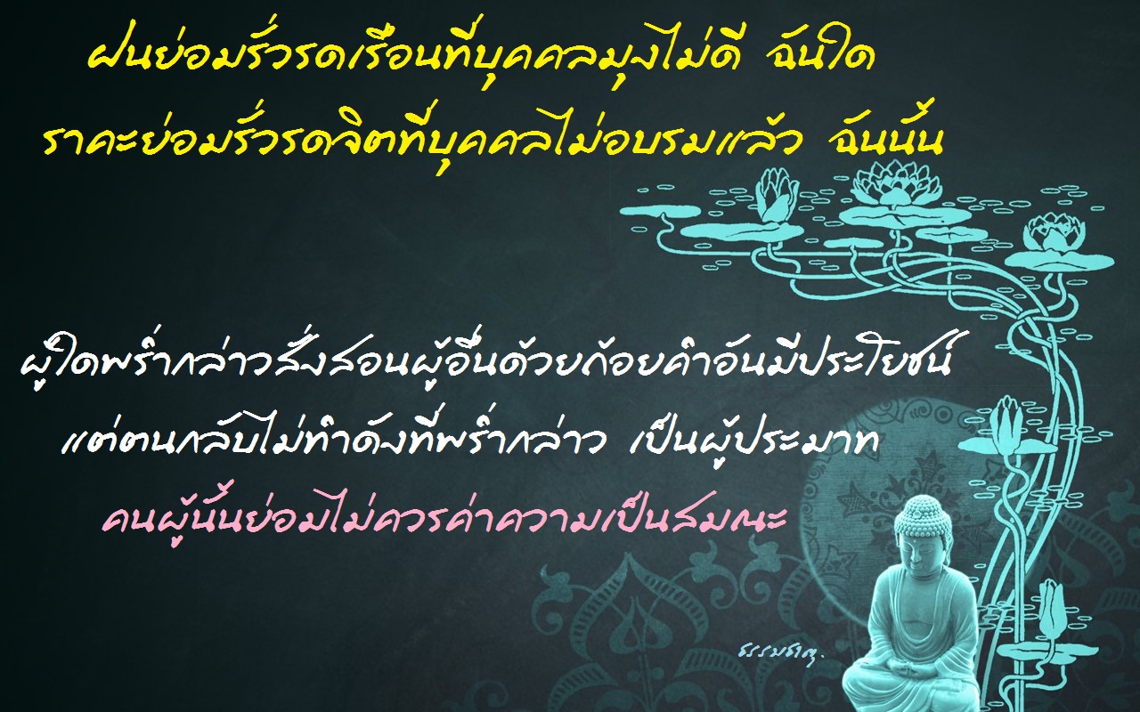 ฝนย่อมรั่วรดเรือนที่บุคคลมุงไม่ดี ฉันใด ราคะย่อมรั่วรดจิตที่บุคคลไม่อบรมแล้ว ฉันนั้น