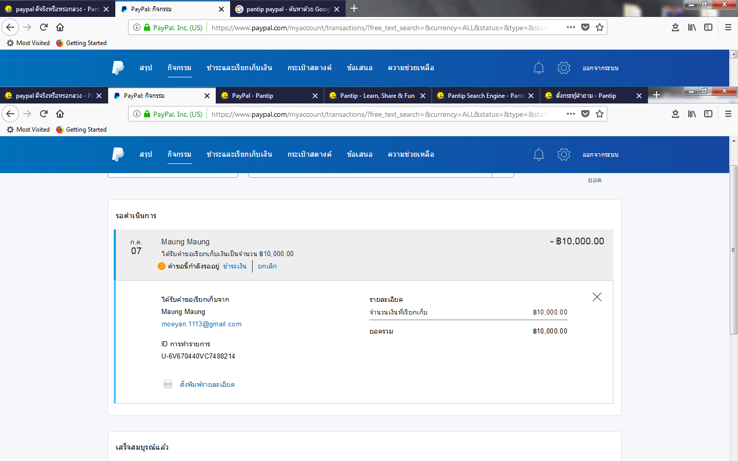 มีไอคนๆนึงมันพยายามจะถอนเงินจาก บช.paypal ของผม 10,000 บาท