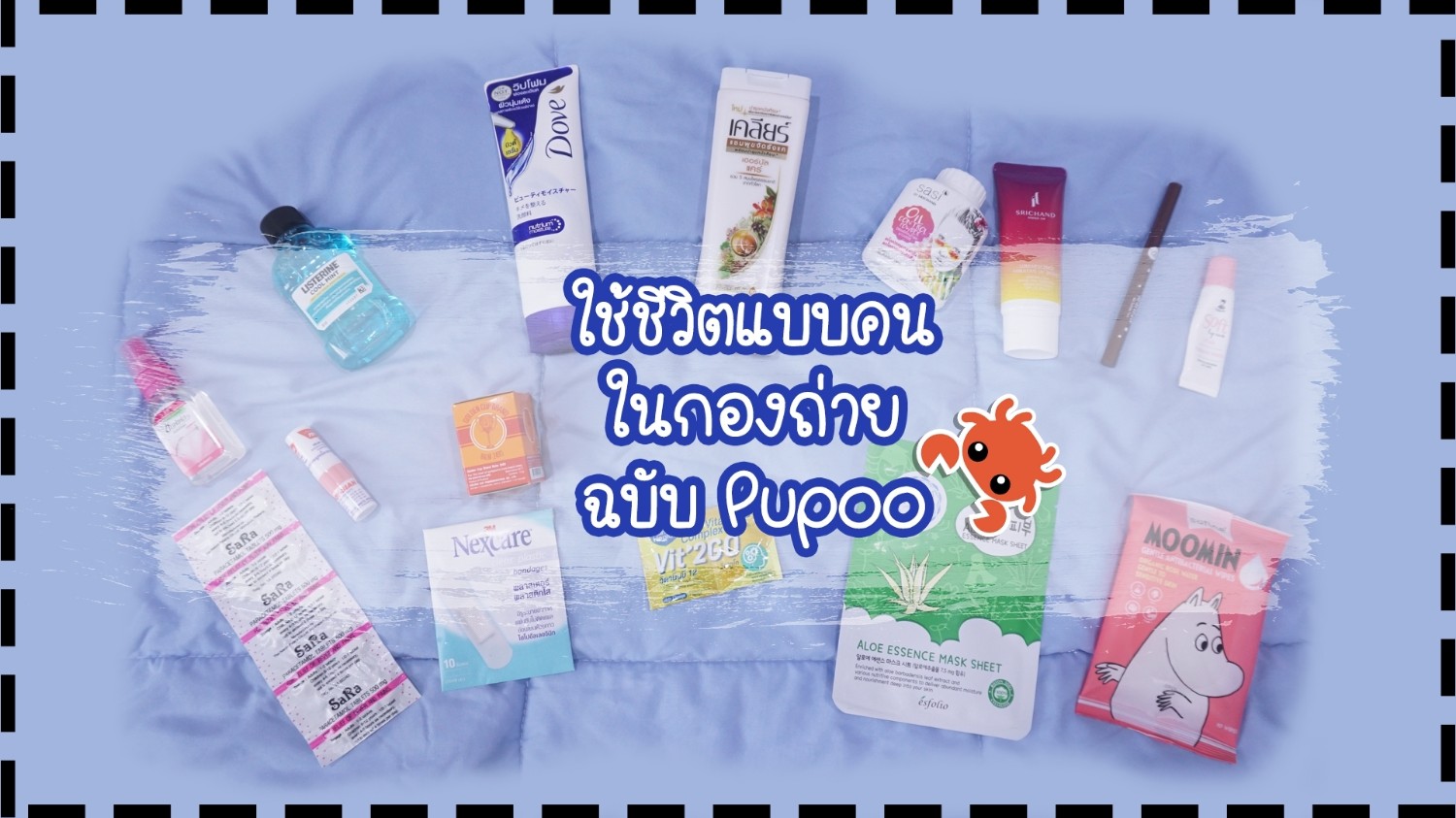 สวัสดีค่า วันนี้ปูจะมาเล่าว่าปกติต้องเตรียมตัวไปกองถ่าย สงสัยว่าปูเป็นนางแบบหรือเปล่าใช่มั้ยล่า แต่ไม่ใช่ค่า ปูเป็นทีมงานนี่แหละค่า ฮ่าๆๆๆ เวลาปูไปออกกองปูต้องเตรียมตัวให้พร้อมเสมอ ไม่ใช่แค่หนึ่งวันแต่ต้องคิดเผื่อไปถึงหนึ่งคืนด้วย ส่วนชุดอาจมีแอบใส่ตัวเดิมบ้างไม่เป็นไร ฮ่าๆๆ ส่วนใหญ่ปูสนุกกับการใช้ชีวิตในกองมาก เพราะได้เจอพี่ๆ เพื่อนๆ แต่บางทีก็เหนื่อยมากๆ ไม่ค่อยมีเวลาดูแลตัวเอง บางงานท้าทายความสามารถเรา บางทีไปกองไม่ได้กลับบ้านนอนค้างคืนนึง บางครั้งออกกองครั้งนึงหลายวัน มีทั้งในสถานที่และนอกสถานที่ ทำงานจนไม่ค่อยได้พักผ่อน พี่ๆหลายคนมีปัญหาเรื่องสุขภาพ รวมถึงสิวที่เริ่มขึ้นหนัก ร่างกายอ่อนแอ ขนาดว่ารังแคก็เริ่มตามมา ทั้งที่แต่ก่อนไม่มีเลยนะ เพราะฉะนั้น ออกกองเมื่อไหร่ ปูจะต้องพกของใช้เหล่านี้ไปด้วยทุกครั้ง