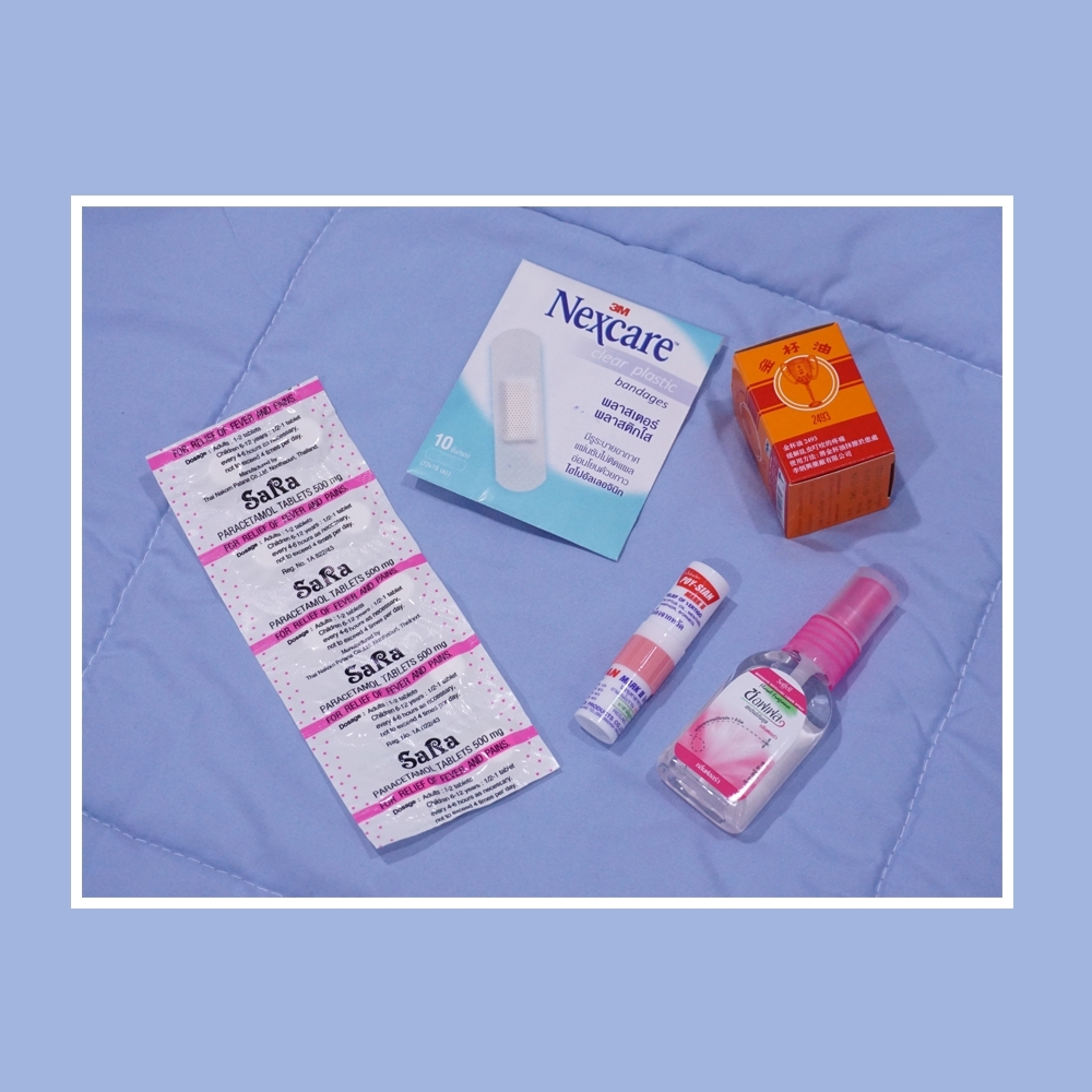 ยาประจำตัว >> ถึงแม้ในกองจะมีกล่องยาอยู่แล้ว แต่พกของตัวเองไปเผื่อจะดีที่สุดค่ะ ปูจะพกยาพารา พลาสเตอร์ ยาหม่องพกไว้อุ่นใจเวลาปวดเมื่อยจะใช้ทางก้นของยาดมก็ไม่ได้มีจิ๊ดเดียว ส่วนยาดมเอาไว้ดมเวลามึนๆๆ ที่สำคัญอย่าลืมซอฟเฟลกันยุงนะจ้า