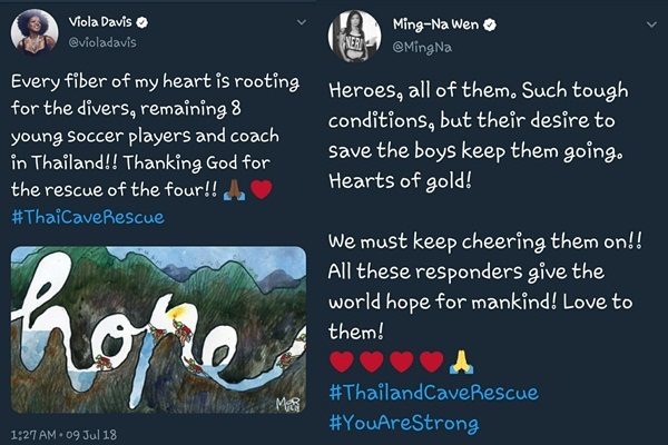 "ขอบคุณนักดำน้ำและทหาร และจิตอาสาทุกคนที่พาน้องออกมาได้นะคะ พวกท่านเป็นฮีโร่ร้อยเปอร์เซ็นต์เลย!"