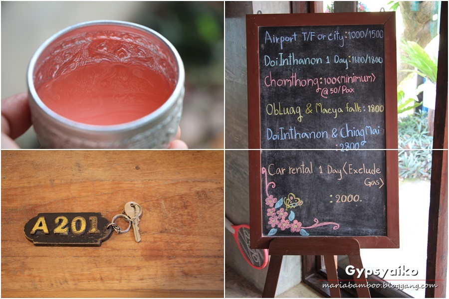เราถึงที่ล๊อบบี้ ที่เคาท์เตอร์นั้น พนง.นำเวลคัมดิ้งมาต้อนรับค่ะ เป็นน้ำลิ้นจี่หวาน ๆ ใส่ภาชนะแบบชาวเหนือ เย็นชื่นใจ หายเหนื่อย.. ทำการเช็คอิน รับกุญแจห้องแล้วเข้าห้องพักกันค่ะ