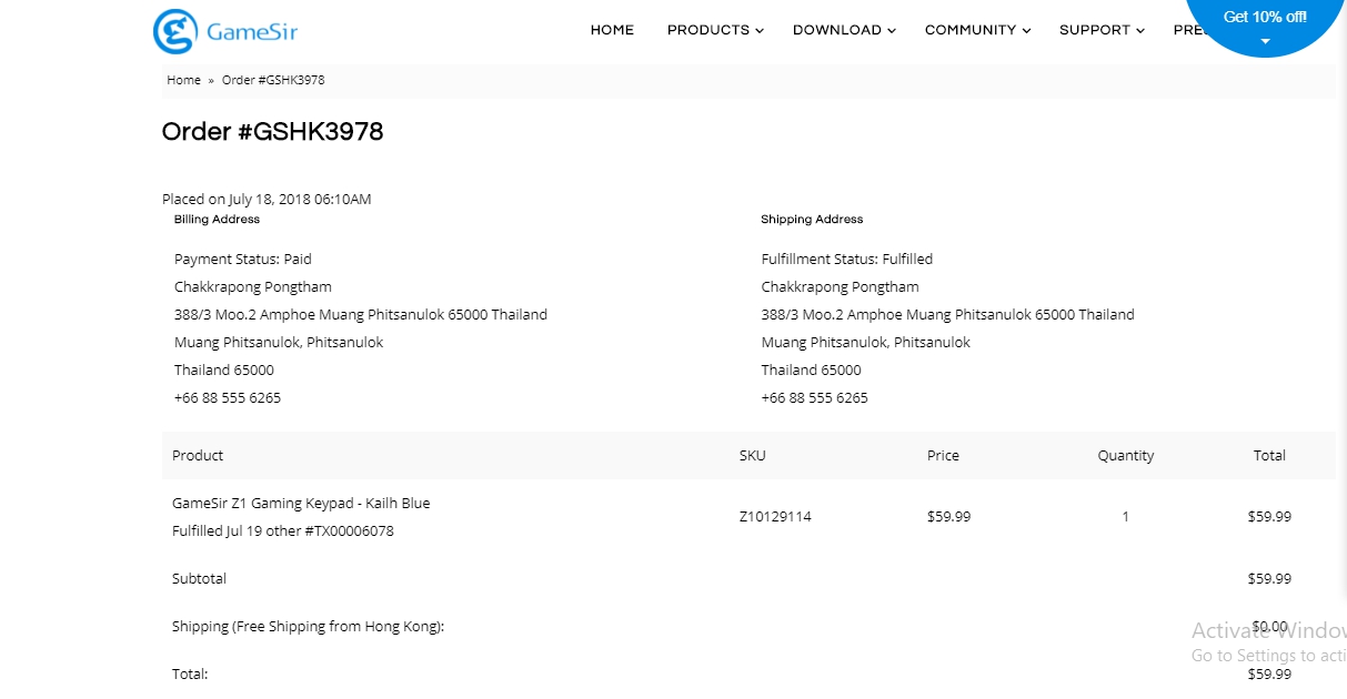 https://gamesir.hk ไป เมื่อวันที่ 18 กรกฎาคม 2561 และทางเว็บไซต์แจ้ง ว่าจัดส่งของให้แล้ว หมายเลขแท็ก TX00006078 ผมกดเช็คสถานะพัสดุ ตั้งแต่วันจัดส่ง จนถึงวันที่ 23 สถานะยังไม่เขาในระบบ และผมได้ลองส่ง อีเมลขอความช่วยเเหลือไปทางเว็บไซต์แล้ว ไม่มีการตอบใดๆเลยครับ อยากจะสอบถามพวก พี่ๆ ว่าเคยเจอเหตุการแบบนี้กันมั้ยครับ และพวกพี่ติดต่อ สอบถาม หรือติดตามสิ่งของอย่างไรครับ และถ้าพี่ๆท่านไหนเคยติดต่อ มีความรู้ด้านการซื้อสินค้าจากเว็บนอกผมขอความช่วยเหลือหน่อยครับ