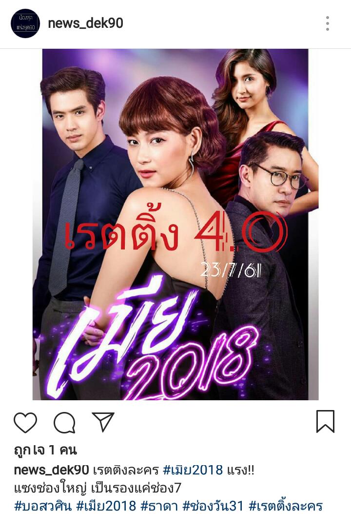 เมีย2018 แรงจริงๆ เรตติ้งสมแล้วกับความสนุกแล้ว กระแสตอนนี้ปากต่อปากมาก เปรี้ยงจริงอะไรจริง ขนาดออนแอร์ช่วง 3 ทุ่มครึ่งถ้าละครสนุกจริง ดึกแค่ไหน คนก็ตามดู
