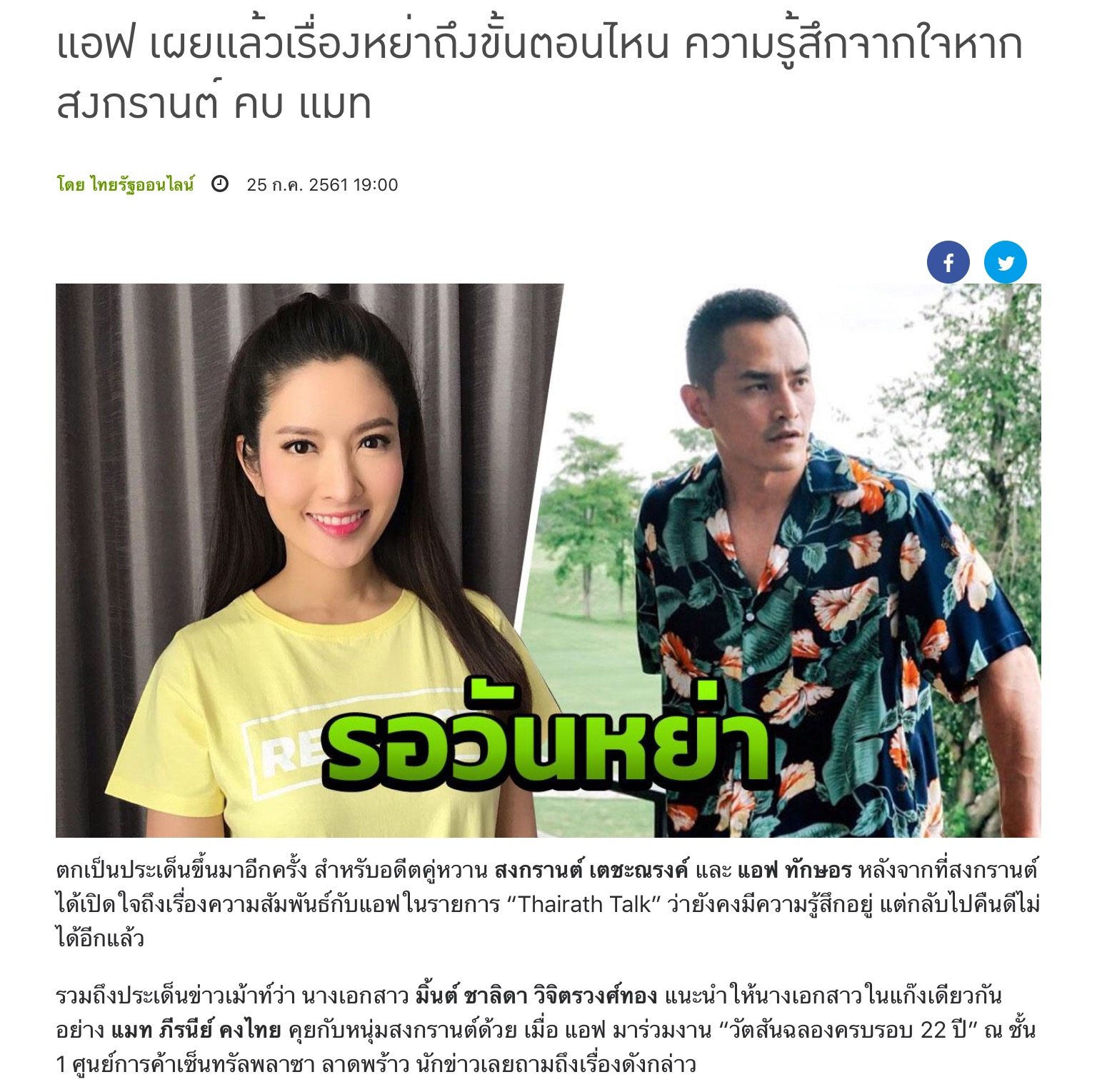 แอฟ เผยแล้วเรื่องหย่าถึงขั้นตอนไหน ความรู้สึกจากใจหากสงกรานต์ คบ แมท