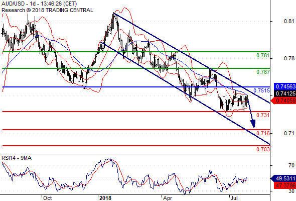 ความเห็นในเชิงเทคนิค: หากแนวต้านที่ 0.7515 ยังไม่เลยขึ้นไป ความเสี่ยงที่จะทะลุต่ำกว่า 0.7310 ยังคงสูงอยู่