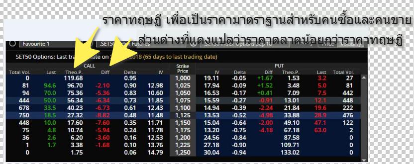 และราคาออฟชั่นตามราคาตลาดที่ยังลดราคาลงจากราคาทฤษฏี ที่เป็นราคาที่เป็นราคาเหมาะสมกับดัชนเซท 50ปัจจุบัน