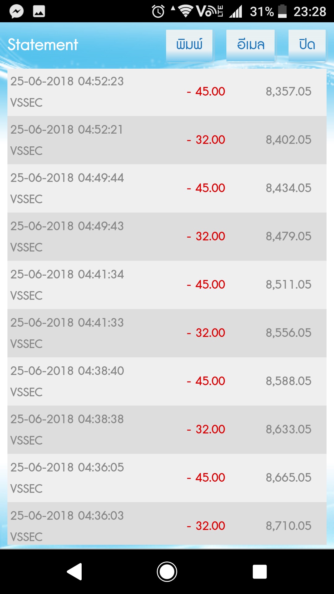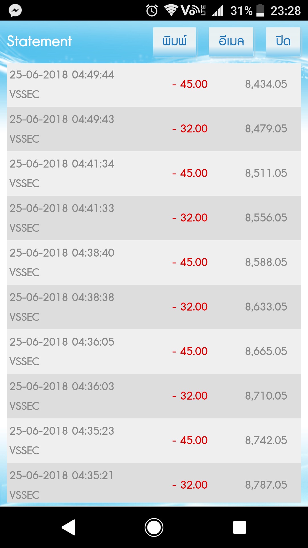 พอมาดูยอดเงินในบัตร ถูกหักไปจำนวน 32 บาท และ 45 บาท อย่างละ 6 ครั้ง รวมเป็นจำนวนเงิน 462 บาท