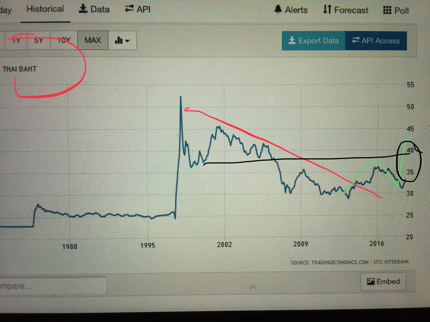 เห้นกราฟเงินบาท แบบสั้น กำลังจะขึ้นเวปเล้กที่ สาม /เวปรายปี ดูท่าจะอ่อน เกิน 35 ไม่อยากคิดเกินกว่านี้