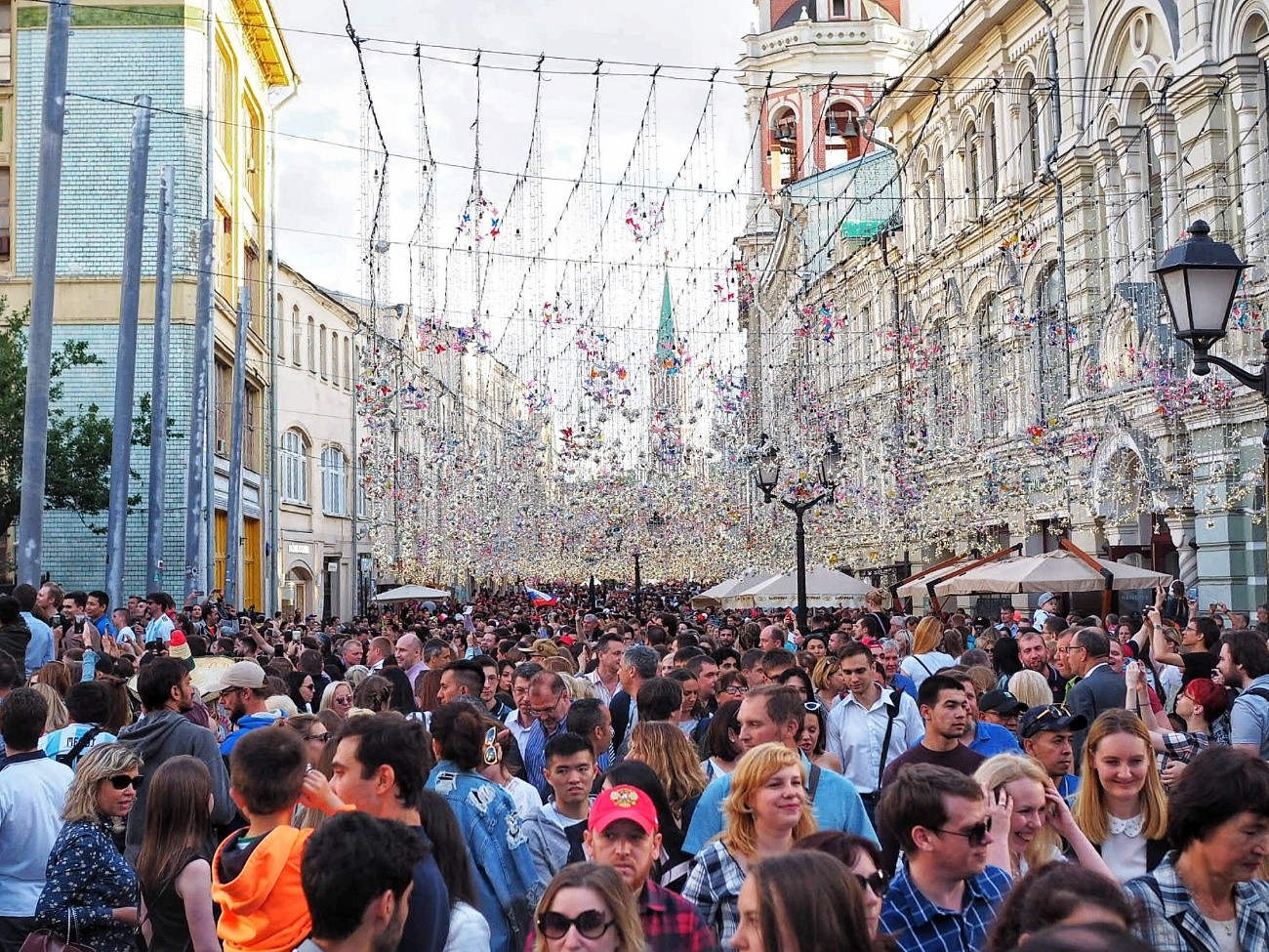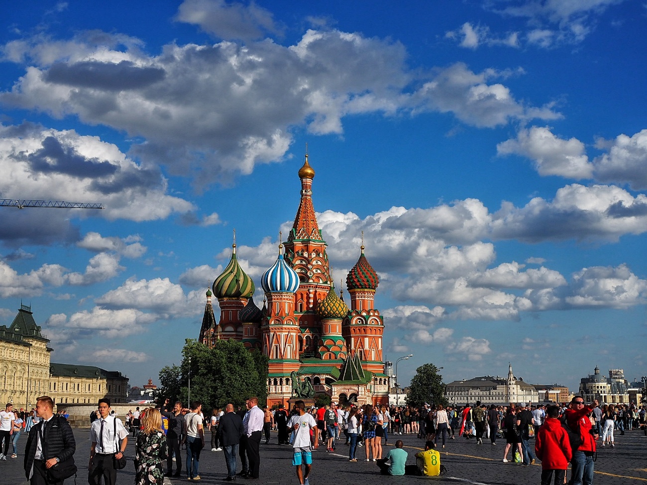 ออกจากห้างเดินต่อเข้าไปที่ Red Square ช่วงฟุตบอลโลก จุดนี้ต้องตรวจอาวุธ ตรวจกระเป๋าอย่างละเอียด เพื่อความปลอดภัย เพราะคนเยอะมาก ส่วนตรงลานจตุรัสแดงเป็นที่จัดกิจกรรมของ FIFA แต่วันที่ผมไป มีรั้วปิดกั้นทางเข้าไว้ ผมเลยไม่เห็นว่ามีอะไรบ้าง แต่ไม่เป็นไรครับ เดินกันต่อไปที่ Saint Basil’s Cathedral กันเลย จากที่กะด้วยสายตา ลานที่กว้างใหญ่แน่นขนัดไปด้วยแฟนบอลนานาชาติน่าจะเป็นหมื่นคน ต้องหามุมถ่ายรูปเอาเอง ผมว่า มหาวิหารแห่งนี้ของจริงดูไม่ใหญ่อย่างที่คิด ไม่อลังการด้วย ผมรู้สึกเฉยๆนะ