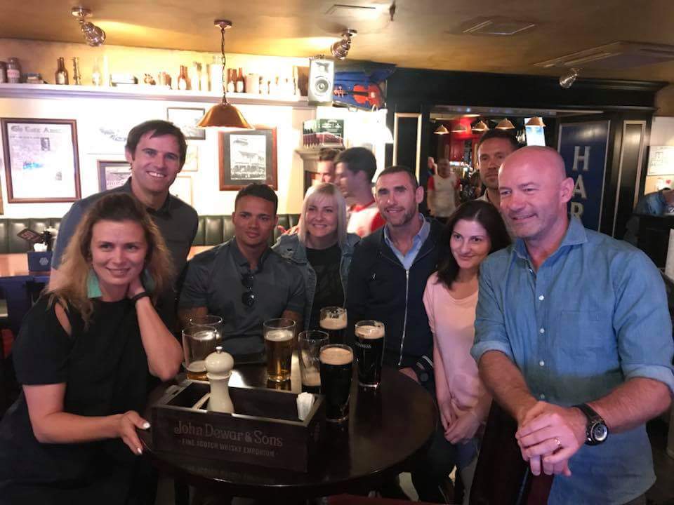 “ฮอตช็อต” อลัน เชียร์เรอร์ อดีตกองหน้าตำนานทีมชาติอังกฤษ ที่บาร์แห่งหนึ่ง ไปพร้อมกับเพื่อนๆอดีตทีมชาติ