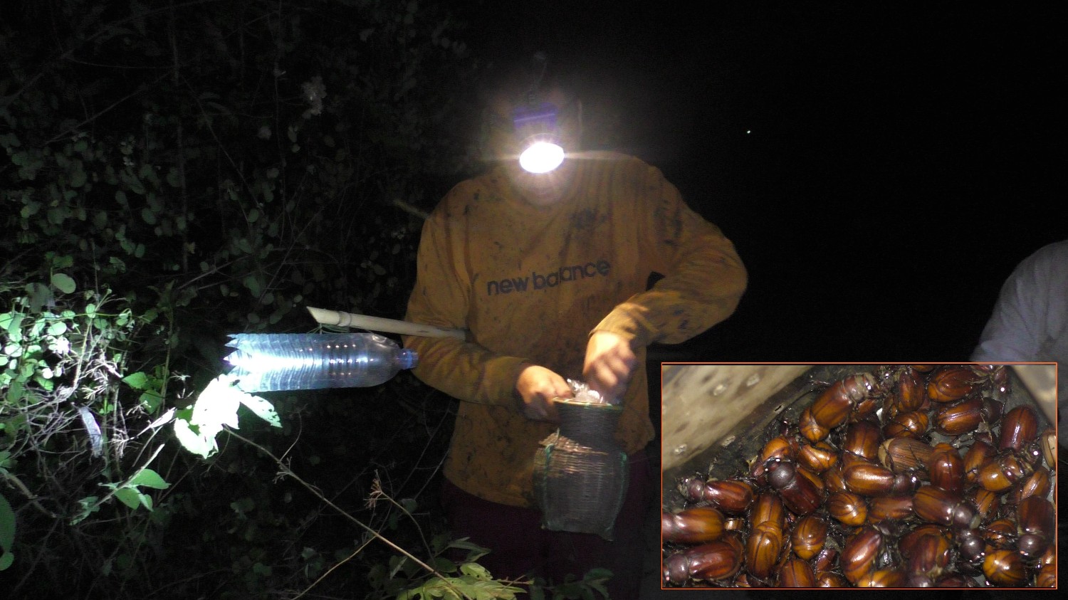 ผมก็ส่องโคมไฟหาแมงจีนูนไปเรื่อยมันจะอยู่ตามยอดพะยอมอ่อนๆ อยู่สูงบ้างต่ำบ้าง ก็ใช่ไม้แหย่ จีนูน สอยเอา