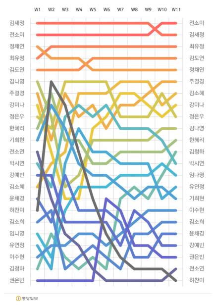 วันที่ 28 กรกฎาคม 2561 นักข่าวจาก 중앙일보 ได้ลงบทความเกี่ยวกับการคาดการณ์ผู้ชนะ 12 คนสุดท้ายจากรายการ PRODUCE 48 โดยรวบรวมจากฐานข้อมูลต่างๆ รวมถึงความนิยมใน SNS ซึ่งได้นำข้อมูลเหล่านั้นมาเปรียบเทียบกับ Produce 101 อีกด้วย