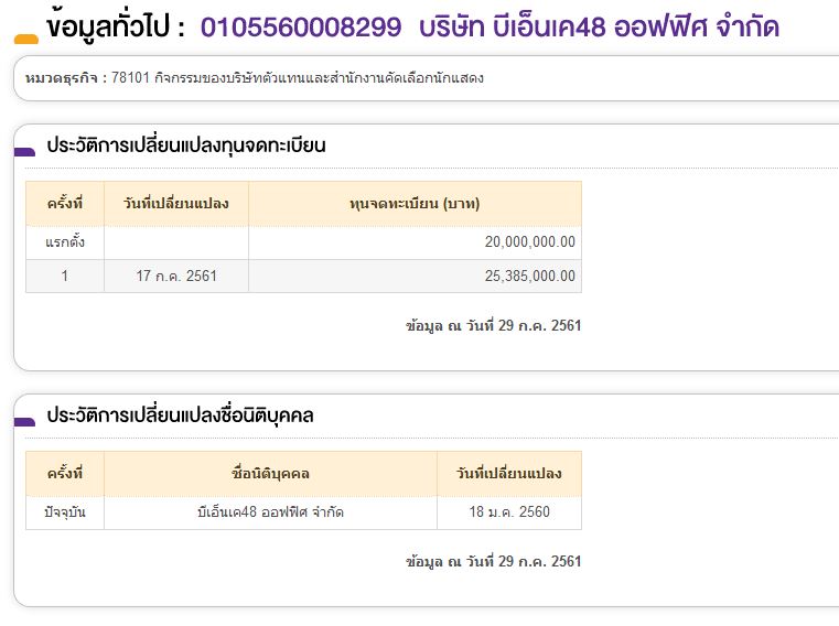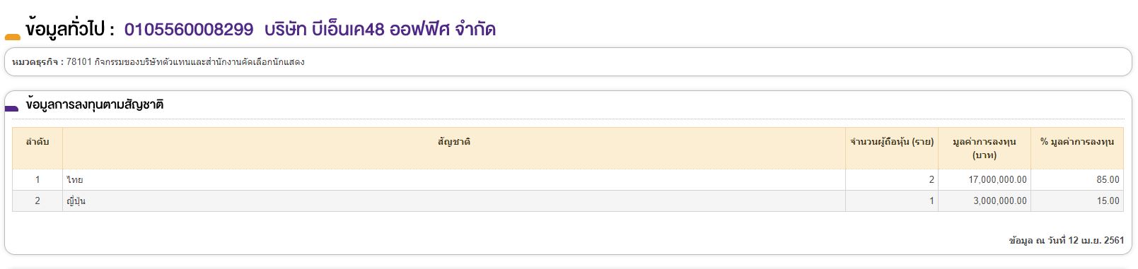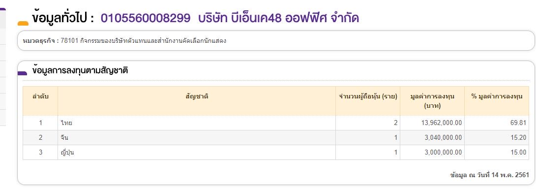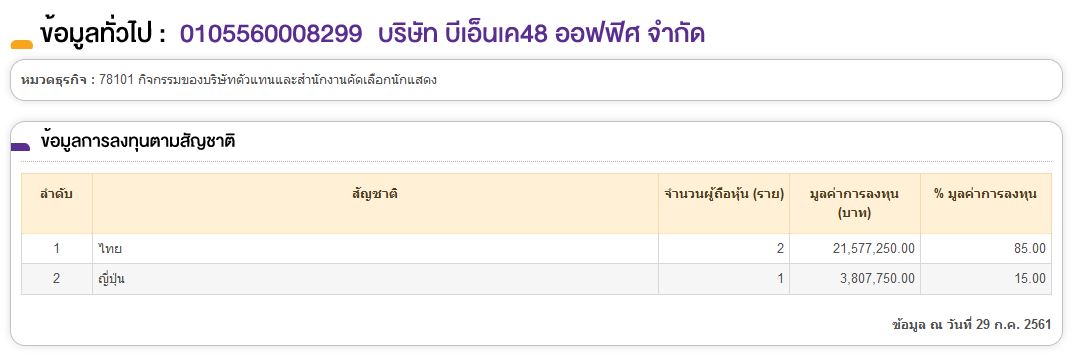 BNK48 อฟช เพิ่มทุน จาก 20ล้าน เป็น 25ล้าน สัดส่วนผู้ถือหุ้นล่าสุด ก็ไม่มีจากประเทศจีนแล้ว