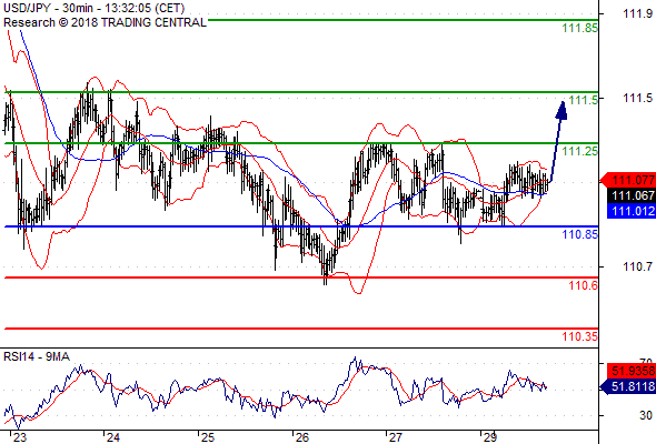 จุดที่ต้องการ: สถานะซื้อสูงกว่า 110.85 เป้าหมายต่อไปที่ 111.25 และ 111.50